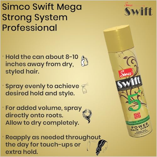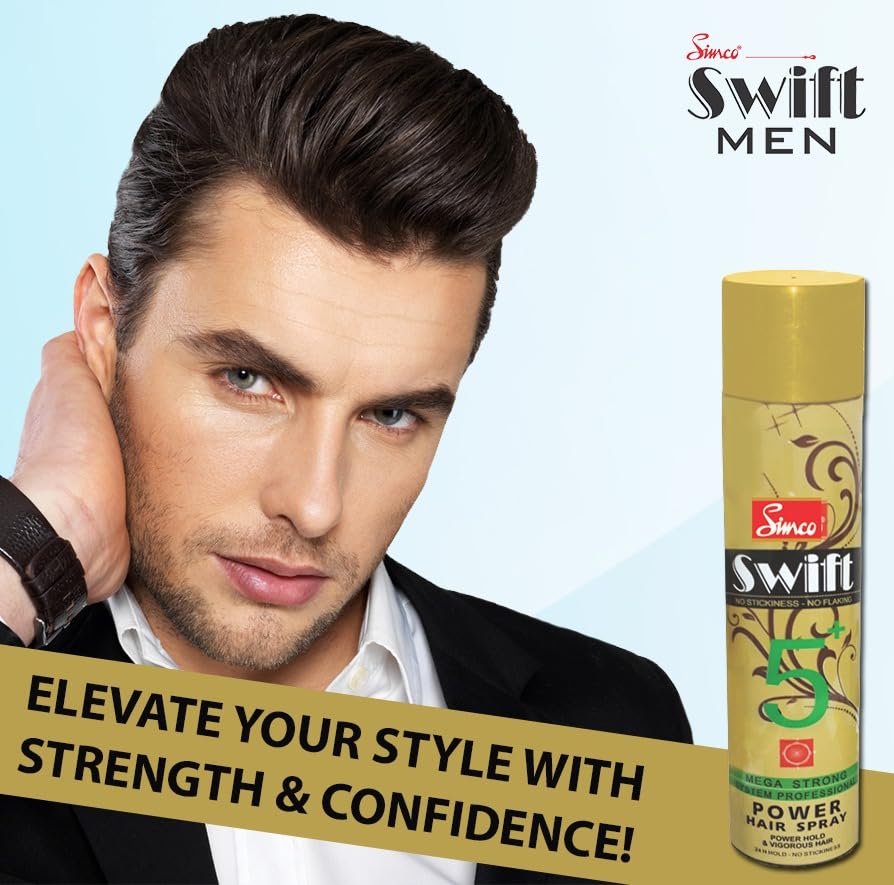 HomeHealth & PersonalHair CareHair StylingSimco Swift System Professional Power Hair Spray | No Stickiness, No Flacking, Strong Hold | Long-Lasting Hold | Pure, Fresh And Beautiful | Suitable for All Hair Types | 250ml