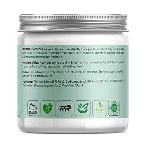 UrbanBotanics® Pure Aloe Vera Skin/Hair Gel With Vitamin E & Natural Emollients (Paraben Free), 200g