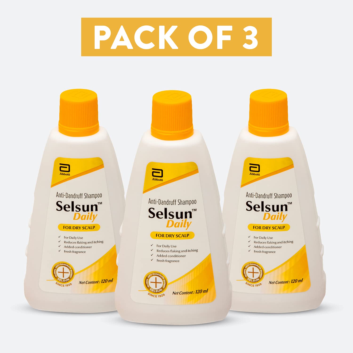 Abbott Selsun Selsun Daily Anti Dandruff Shampoo Clears Away Dandruff Flakes Relieves From Dandruff Related tching Conditions Hair (Pack Of 3 120Ml Each)