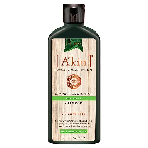 A'kin Natural Purifying Lemongrass & Juniper Shampoo For Oily Hair & Scalp, No Paraben, No Sulphate & Silicone Free, 225 ml