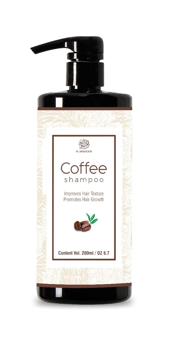 AL MASNOON coffee shampoo 200ml is made with dark arabica coffee beans . it helps to boosts hair growth promotes soft hair and exfoliates the scalp. applying coffee topically to hair and scalp might stop hair loss and promotes regrowth . the caffeine coffee can help stimulate the hair growth and stop hair loss.