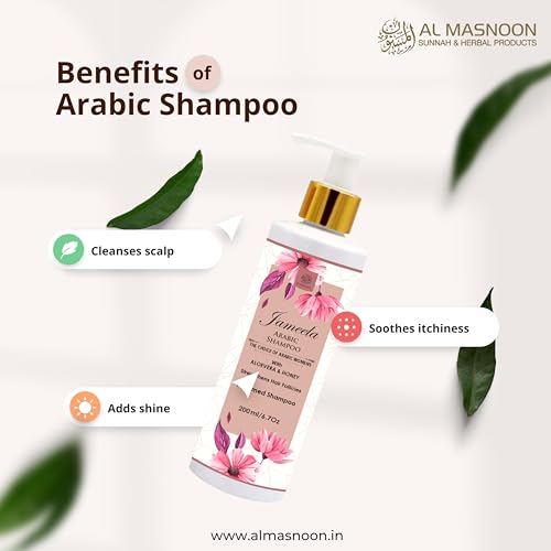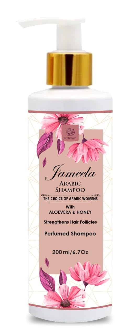 Indulge in the luxurious purity of Al Masnoon Jameela Arabic Shampoo with Aloe Vera & Honey the preferred choice of Arabic women for exquisite haircare. This 200ml bottle of shampoo offers a harmonious blend of pure honey nourishing aloe vera and aromatic essential oils meticulously formulated to nourish and revitalize your hair.