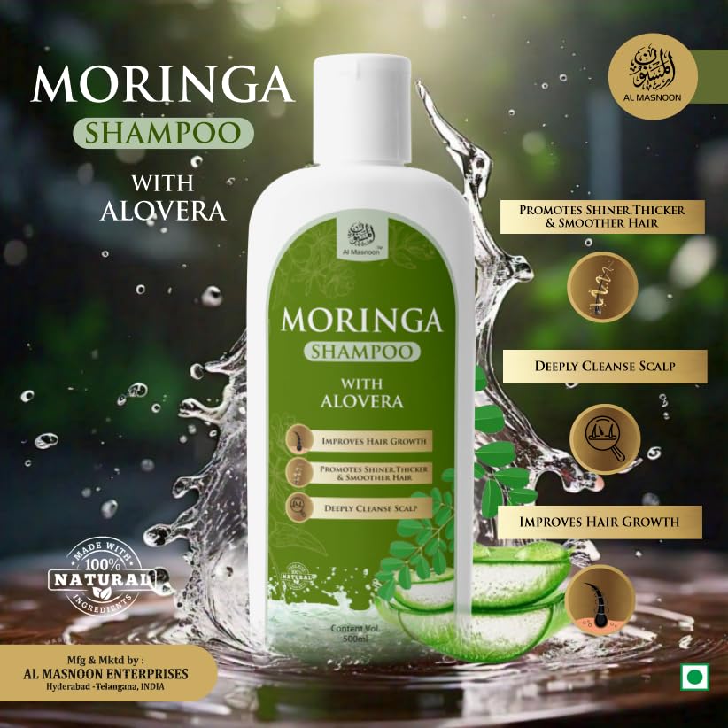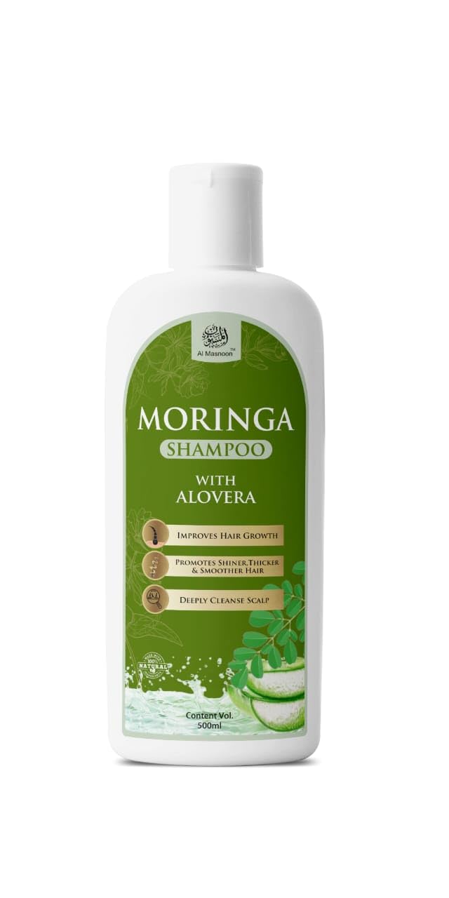 Revitalize your hair care routine with Al Masnoon Moringa Shampoo with Aloe Vera a formula designed to deeply cleanse the scalp while promoting healthy hair growth. Infused with the natural goodness of Moringa leaves and soothing Aloe Vera this shampoo nourishes the scalp removes impurities and strengthens hair from root to tip. The powerful combination of ingredients helps improve hair texture reduce hair fall and stimulate hair growth for thicker healthier locks. Available in a generous 500ml pack it's ideal for daily use and suitable for all hair types.