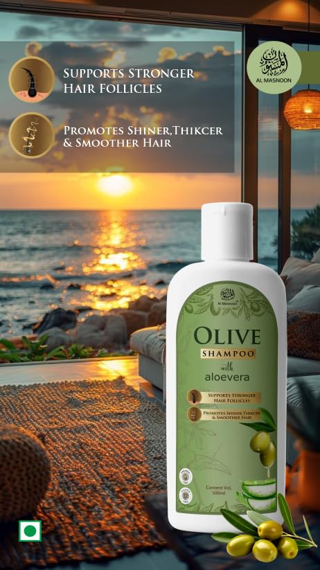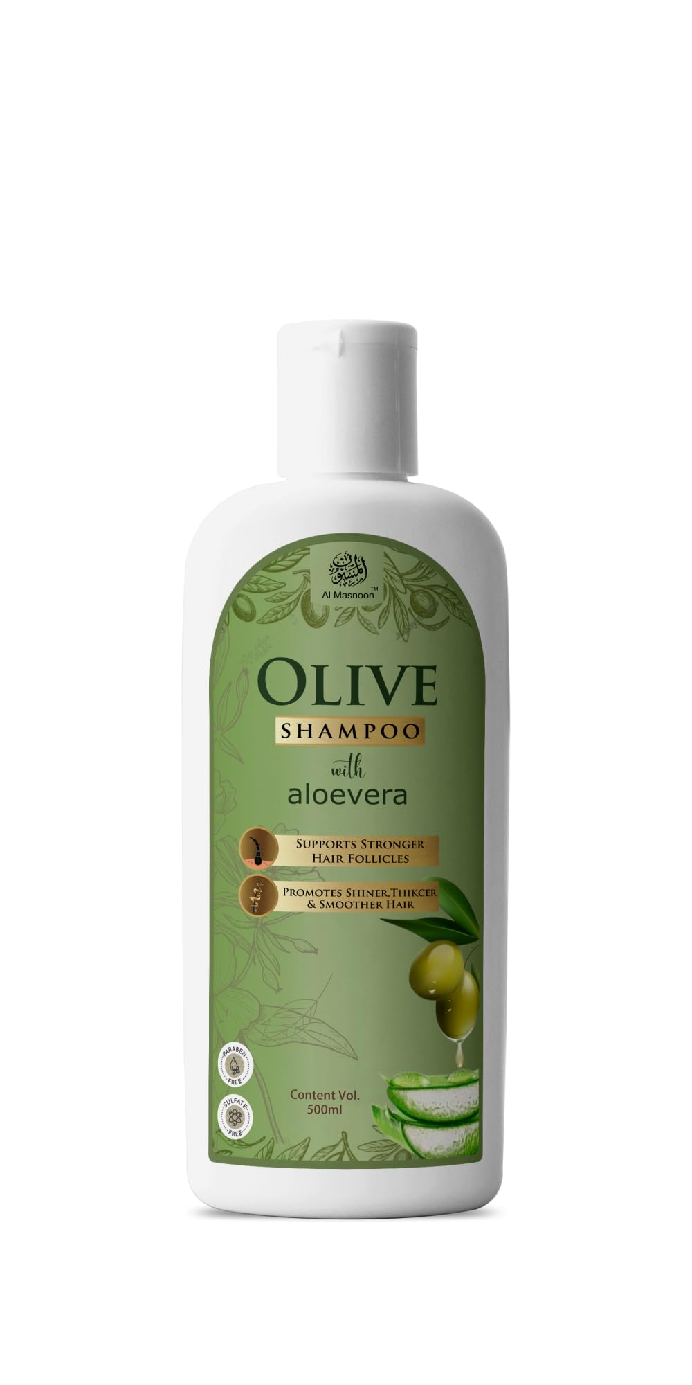 AL MASNOON Olive Shampoo ? 500ml Enriched with Olive Leaves and Aloe Vera for Stronger Hair Follicles Single Pack