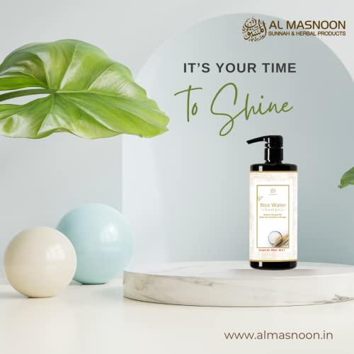 AL MASNOON Rice Water Shampoo 200ml makes the hair smoother and increases the shine and makes the hair stronger . RICE WATER is rich in vitamin. it helps in hair growth and improves elasticity. al masnoon Rice water shampoo contains vitamins and minerals that nourish the hair and scalp and may encourage growth. Rice water contains many antioxidants and vitamins which are beneficial for hair health and growth. the nutrients in rice water that can benefit your hair are folic acid niacin magnesium and inositol. It also contains amino acids that let it act as a protein treatment to strengthen and protect hair.