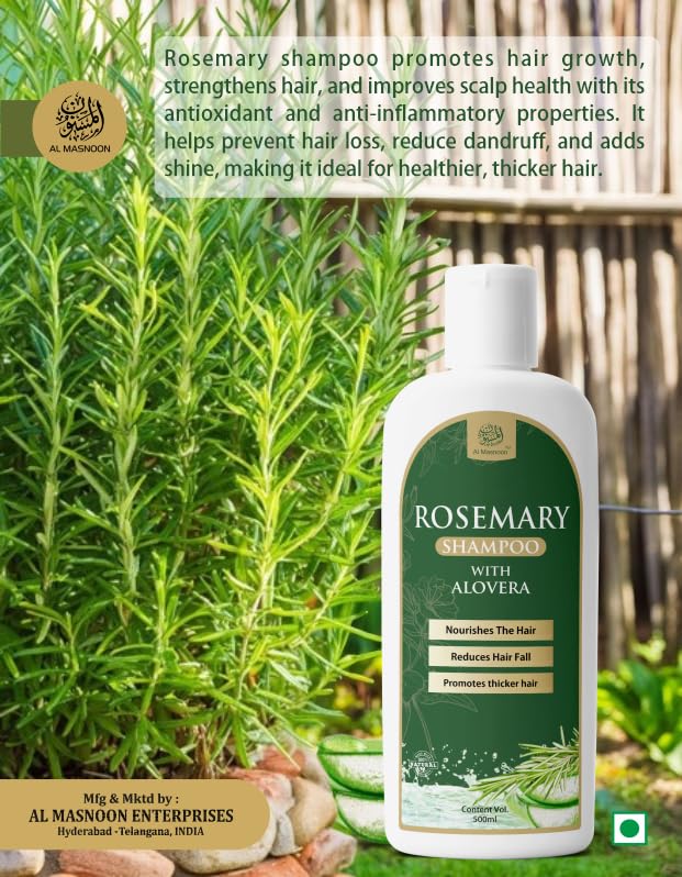 AL MASNOON Rosemary Shampoo with Aloe Vera ? Nourishing Formula to Reduce Hair Fall and Promote Healthy Strong Hair (500ml Pack of 1)