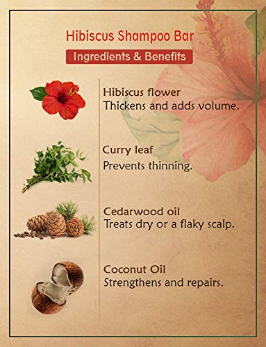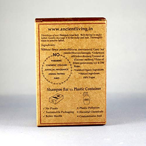 Ancient Living Hibiscus Shampoo Bar gently cleanses out impurities enhances hair growth and fights dryness and frizz with its moisturizing properties. It is a storehouse of vitamins such as E C and B which are known for their nourishing properties. Infused with hibiscus powder it strengthens your roots and gives you a lustrous shine. Curry leaf powder prevents hair fall and helps with premature greying. Cedarwood oil treats a dry and an itchy scalp. Coconut oil strengthens and repairs your hair whereas palm oil deeply nourishes your hair giving you beautiful lustrous locks. Application: Wet your hair and apply the shampoo bar directly on your scalp. Gently clean your hair by massaging it all over your scalp and rinse. Shampoo bars are a great environment-friendly option and help you save some bucks at the same time! Their minimal packaging and shape make it a zero waste alternative. Since they don't come in the liquid form like the traditional shampoos they last a long time. Their compact size and light weight make them perfect for travel! BENEFITS HIBISCUS FLOWER POWDER · It is rich in vitamin C which boosts hair growth. · It is rich in amino acids that nourish your hair strengthen your roots and keep your locks lustrous and healthy. · It thickens your hair and adds volume. · It also helps condition your hair preventing dryness frizz and breakage. · It helps you treat issues of the scalp such as itchiness and dandruff. · Hibiscus leaves help to prevent split ends by keeping your hair strong and hydrated. CURRY LEAF POWDER · It is rich in protein which prevents thinning of hair. · It treats dry hair. · It prevents premature greying and promotes hair growth. · It repairs your hair and controls frizz. CEDARWOOD OIL · It stimulates hair growth and reduces hair loss. · It treats dry or a flaky scalp.