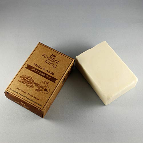 Ancient Living Methi and Amla Shampoo Bar It gently cleanses out all the impurities fights scalp problems and deeply conditions your hair. It is a storehouse of vitamins E C and A which are known for their nourishing properties. Infused with methi powder it eliminates dandruff and stimulates hair growth. Amla powder treats a dry flaky and an itchy scalp. Rosemary essential oil eliminates dandruff and lifts off exhaustion with its refreshing smell. Coconut oil strengthens and repairs your hair whereas palm oil deeply nourishes your hair giving you beautiful lustrous locks. Application: Wet your hair and apply the shampoo bar directly on your scalp. Gently clean your hair by massaging it all over your scalp and rinse. Shampoo bars are a great environment-friendly option and help you save some bucks at the same time! Their minimal packaging and shape make it a zero waste alternative. Since they don't come in the liquid form like the traditional shampoos they last a long time. Their compact size and light weight make them perfect for travel! BENEFITS METHI POWDER · It reduces hair fall and stimulates hair growth. · It effectively removes excess oil on the scalp. · It fights dandruff and treats dry and an itchy scalp. · It deeply conditions your hair and gives you shiny luscious locks · It prevents premature greying and repairs damaged hair. · It gives you soft frizz-free detangled hair. · If you have curly hair methi helps in defining your curls too! AMLA POWDER · It cures hair loss. · It contains essential fatty acids which strengthen your hair and add lustre. · The surplus of vitamin C in amla helps in preventing premature greying. · It conditions your hair and treats dandruff. · It treats a dry flaky and an itchy scalp and nourishes it from within. · It has a high iron content which stimulates hair growth.
