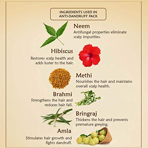 Consists of : Anti-dandruff pack 100gm Hibiscus and bhringraj hair oil 100 ml Hydrating shampoo 200 ml