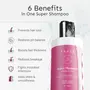 Reduces Breakage: The Super Shampoo contains pea protein that repairs cuticle damage boosts elasticity strengthens hair and prevents strands from snapping. As per a clinical study the hair strands were observed to be stronger by 14.5% after one wash.