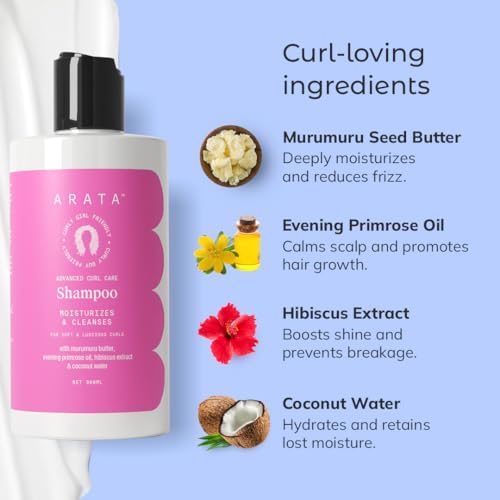 Arata Curly Hair Shampoo for Dry, Frizzy, Wavy, Curly Hair | Sulphate Free| Moisturising, Hydrating| with Murumuru Butter, Hibiscus Extract | No SLS, SLES, Paraben, Silicone | CG Friendly | 300ml x 1