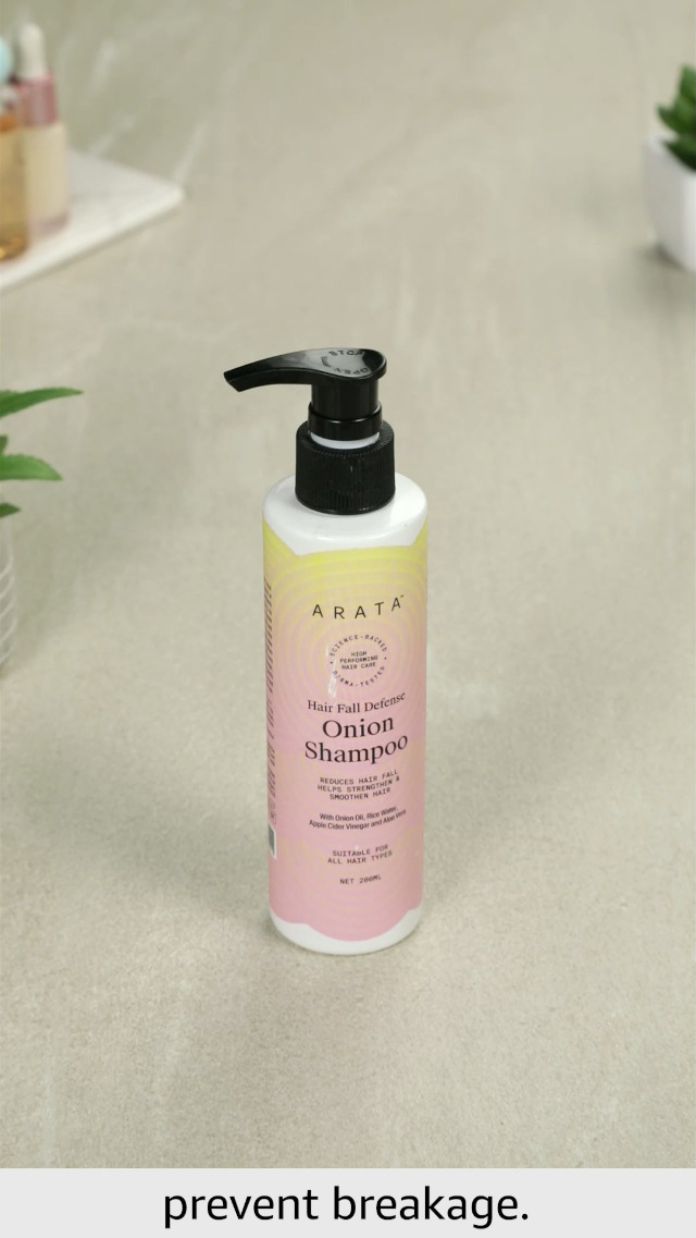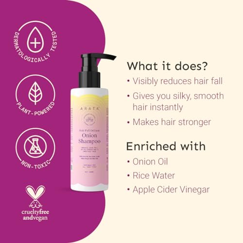Arata Hair Fall Defense Onion Shampoo (200 ML) | Controls Hair Fall | Helps Strengthen & Smoothen Hair | With Onion Oil, Rice Water, Apple Cider Vinegar and Aloe Vera