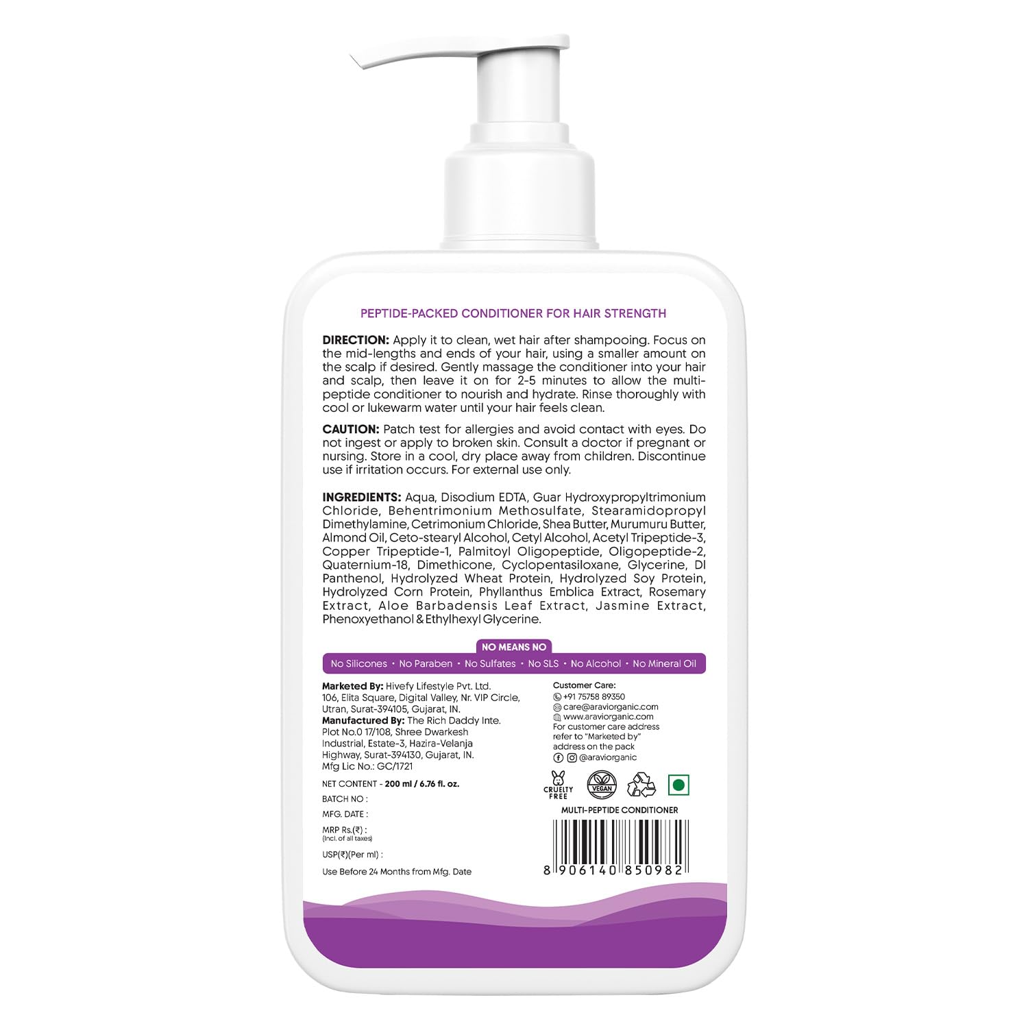 POWERFUL MULTI-PEPTIDE COMPLEX: Aravi Organic Multi-Peptide Conditioner is an advanced formula that combines a range of peptides to deeply nourish scalp and fortify hair from within. These peptides help to rebuild hair structure enhancing its strength and