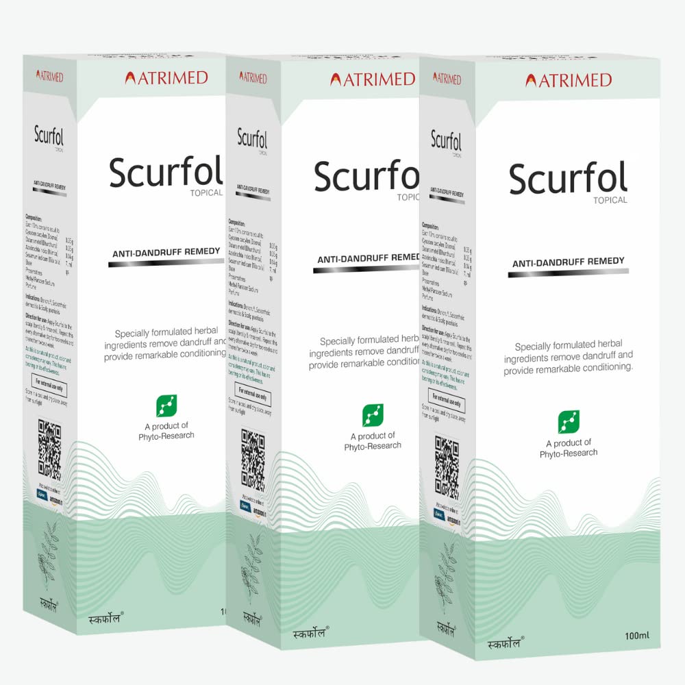 ATRIMED Anti-Dandruff Scurfol Shampoo: Ayurvedic Formula By Plant Scientists | Non-Sticky & Easily Washable | 300Ml | Pack Of 3 | Controls Dandruff | Ayurvedic Shampoo