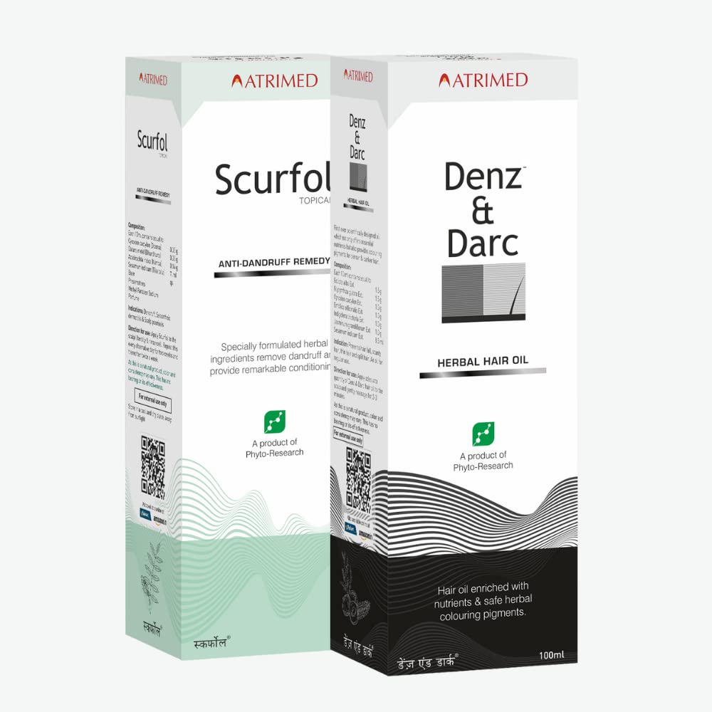 Atrimed Denz & Darc Hair Oil and Scurfol Anti-Dandruff Shampoo | Pack of 2