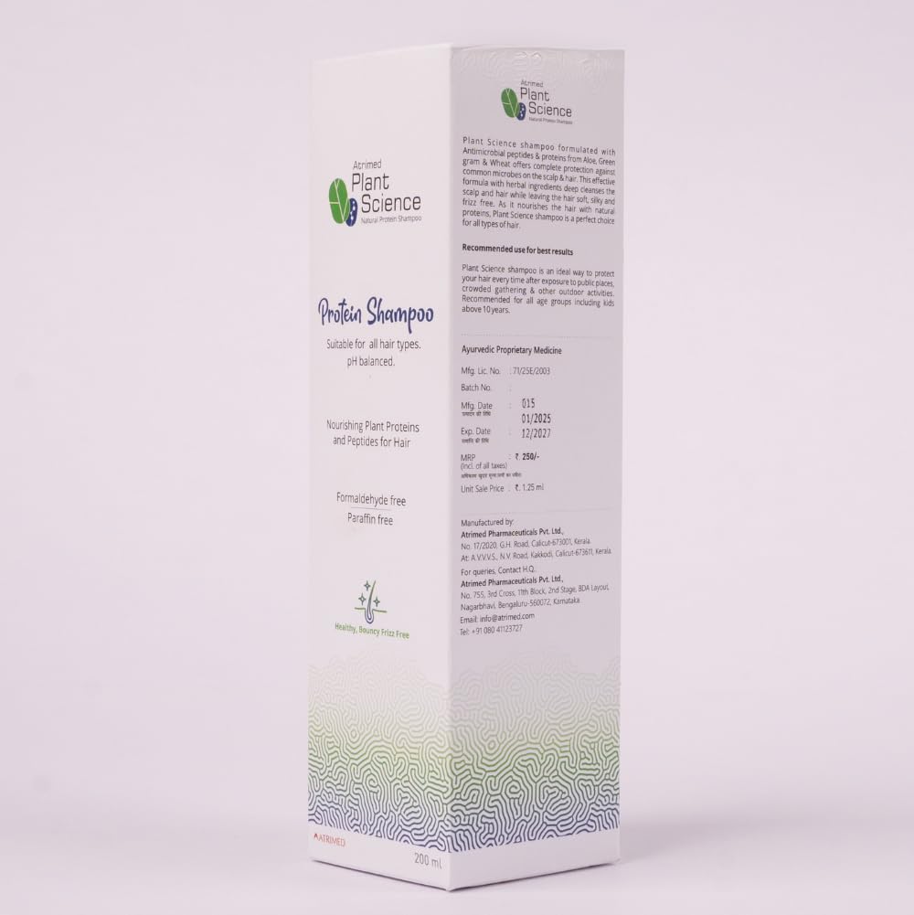 Atrimed Plant Science Natural Protein shampoo | Repairs damaged hair | For Healthy & Frizz-free Hair | 200ml
