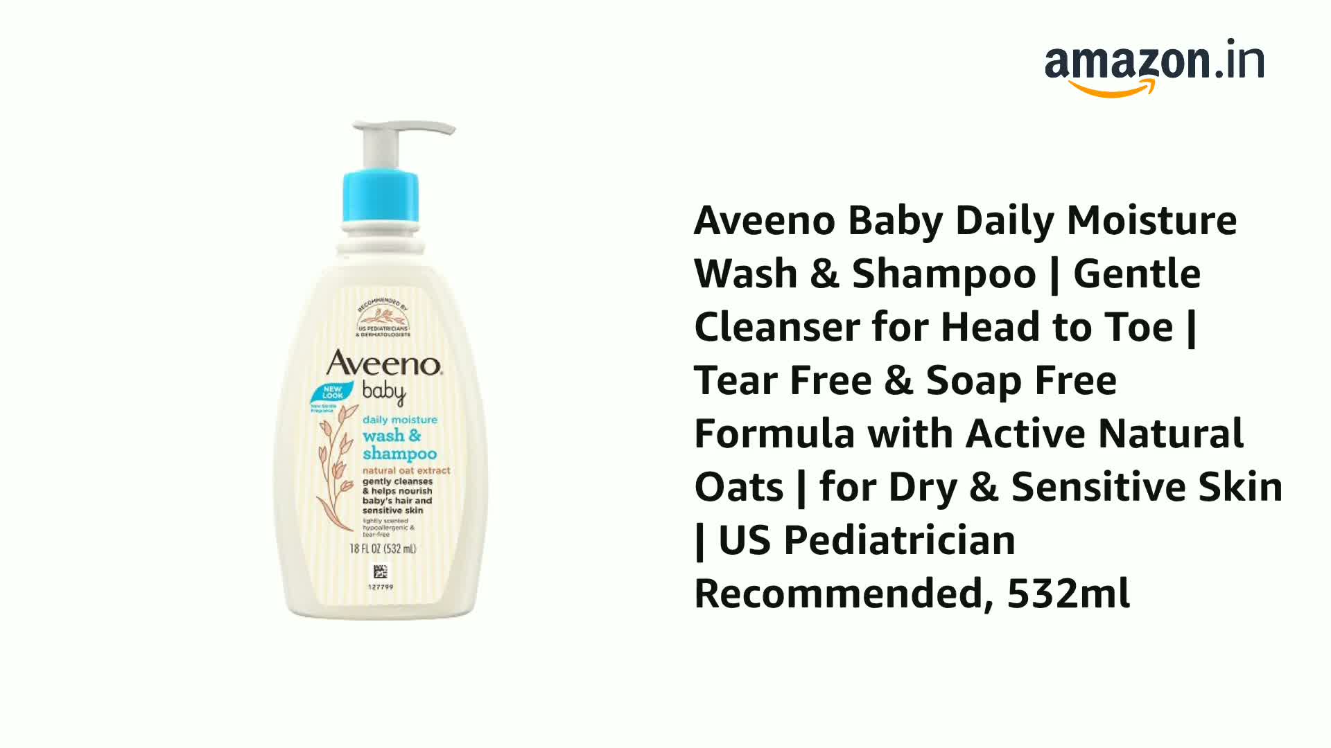 Aveeno Baby Daily Moisture Wash & Shampoo | Gentle Cleanser for Head to Toe | Tear Free & Soap Free Formula with Active Natural Oats | for Dry & Sensitive Skin | US Pediatrician Recommended, 532ml