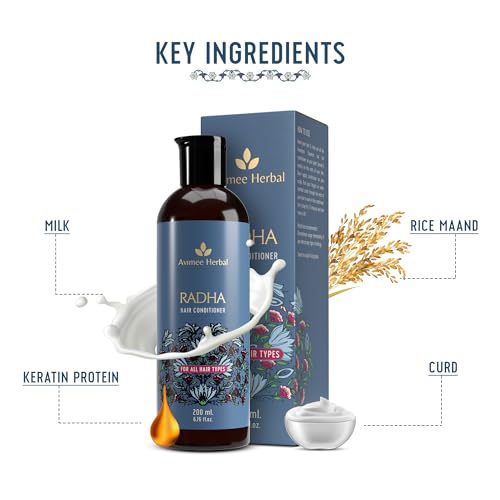 AVIMEE HERBAL Radha Hair Conditioner For All Hair Type | Repairs Damaged Hair | With Keratin Protein, Rice Protein, Apple Cider Vinegar & Aloe Vera | Makes Hair Silky Smooth | 200 Ml,1 Count