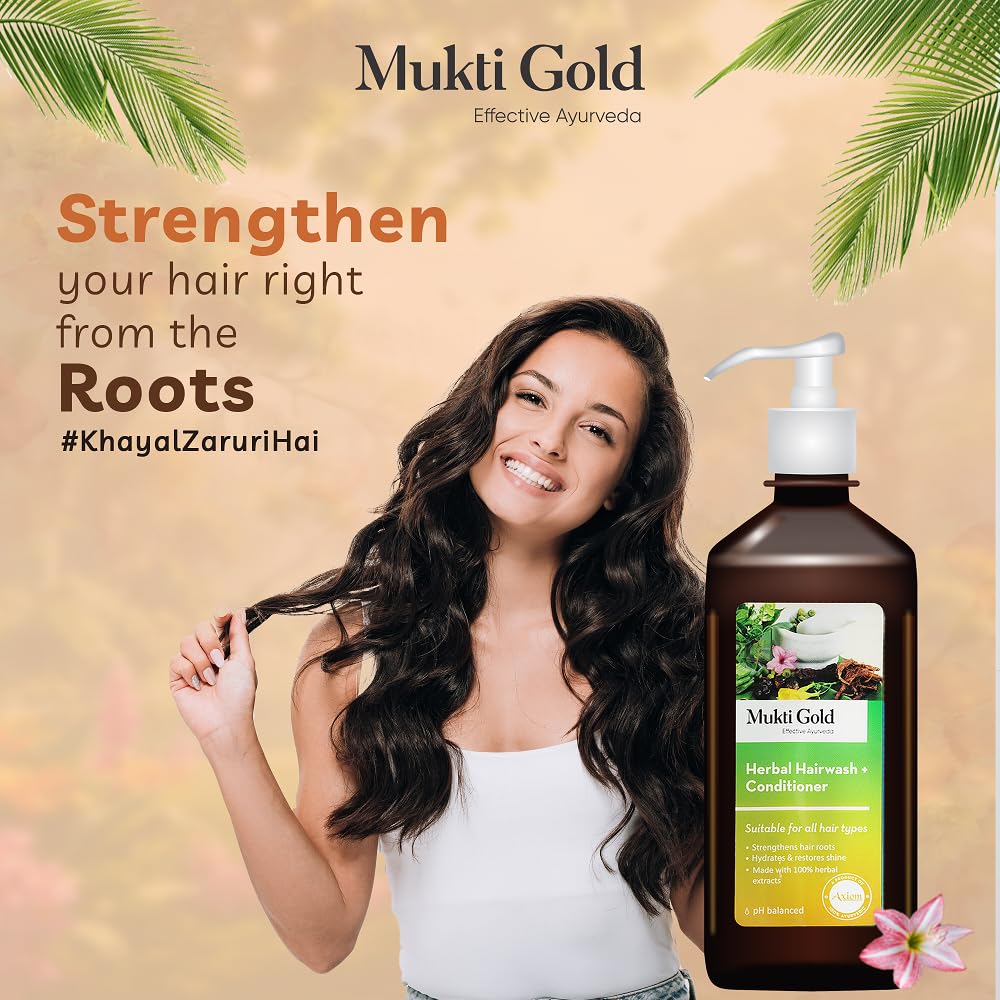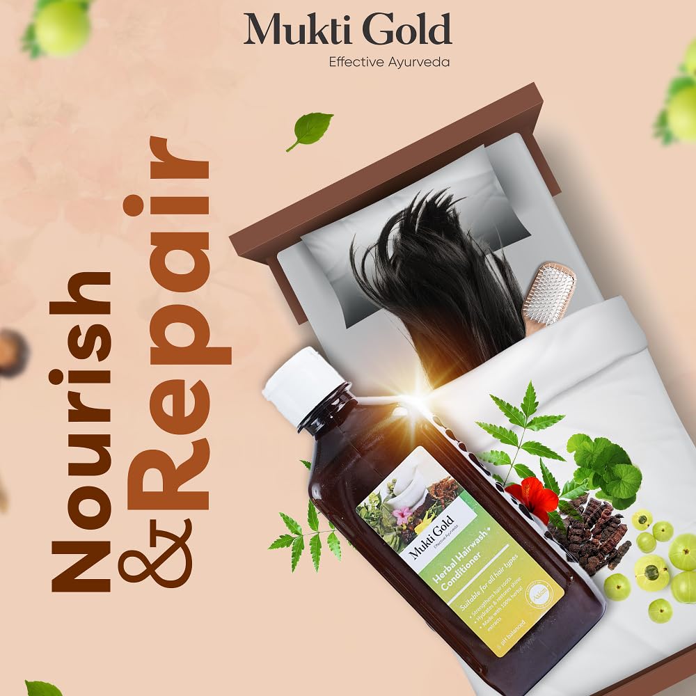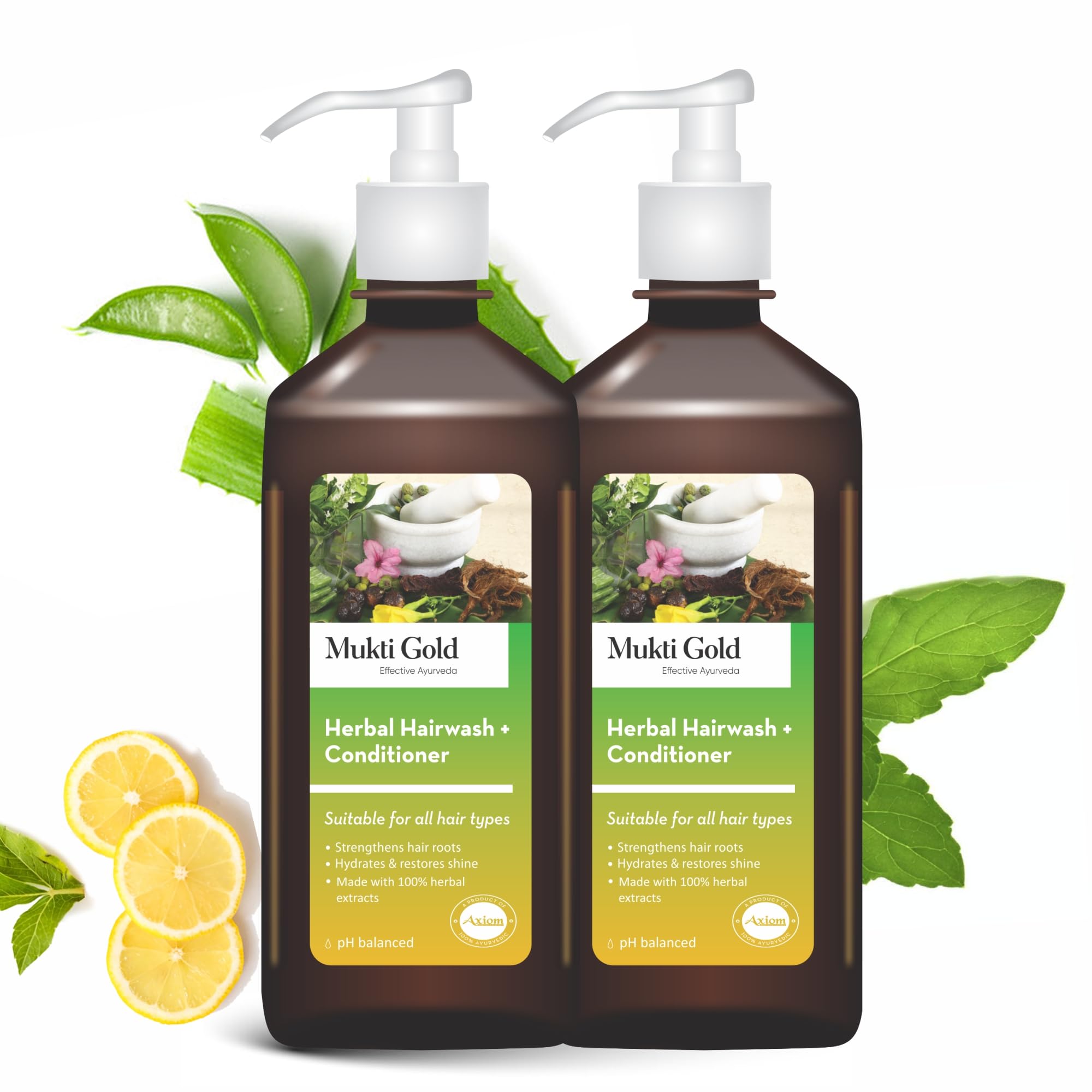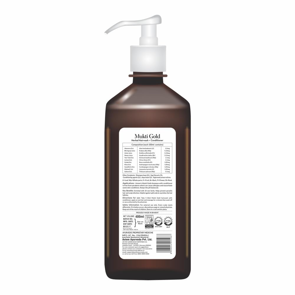 Axiom Mukti Gold Herbal Hairwash + Conditioner | Blend of 15+ Ayurvedic Herbs | For Nourishing Hair Repairs Dry Damaged Hair | Paraben & Sulphate Free | For all Hair Types 400mL (Pack of 2)
