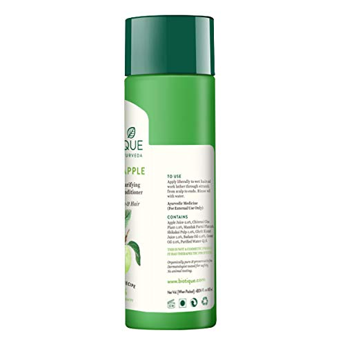 Product Description This refreshing formula is blended with pure green apple extract sea algae and centella to purify and nourish the scalp and hair with natural minerals and proteins. Special pH balanced formula is gentle enough to use every day. Leaves hair refreshed and full of natural body and shine. From the Manufacturer Opting for the right shampoo to your hair and scalp is very important for the maintenance of a healthy hair. Biotique Green Apple Purifying Shampoo and Conditioner comes with a blend of green apple extract centella and sea algae to provide your hair with vital minerals and proteins making it healthy and shiny. This shampoo is apt for daily usage and doesnât dry your scalp retaining the natural shine and body of the hair.Biotique Daily Purifying Shampoo and Conditioner is ideal for oily hair and scalp. The formula of the shampoo has a balanced pH which makes it treat your hair gently providing sufficient nourishment. Green apple extracts cleanses your scalp and makes it oil free thereby refreshing your hair.This product is a mixture of shampoo and conditioner and thus you neednât buy an extra conditioner for your hair. The shampoo helps in bringing volume to your hair whereas the conditioner helps in bringing shine. It helps you in getting rid of your dandruff and itchy scalp. The ingredients of the product are Chinai Ghas Manduk parni Shikakai Seb Badam tail Nariyal tail Himalayan water and Ayurvedic medicine. This shampoo is completely organic and free of preservatives.Apply this product generously on your wet hair work lather and gently massage your hair till scalp. Do not let your eye come in contact with the shampoo.Product Features It is suitable for both men and women. It comes in a bottle of 210 ml. It has green apple extracts sea algae and centella. It is suitable for oily hair and scalp. It is organic and free of preservatives. Cleanses your hair and scalp and keeps it voluminous and shiny.