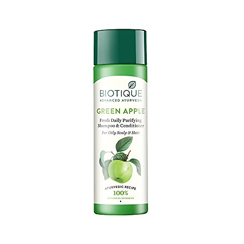 Biotique hair care frequent use cleanser for oily hair green apple is a refreshing cleanser formulated for frequent use. Biotique green apple shampoo contains apple extract along with sea algae and centella. Green apples have been natures health fruit since the beginning of time. Therefore the usage of shampoo every day does not effect pH balance of the hairs. It also nourishes the scalp with natural minerals and proteins and cures scalp problems.