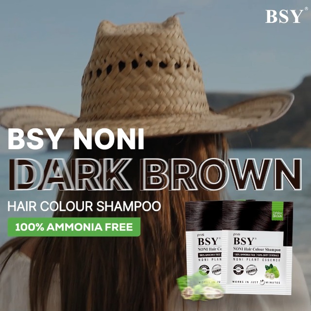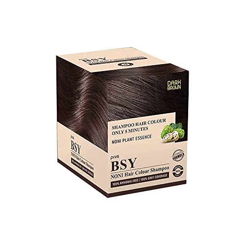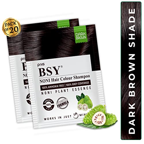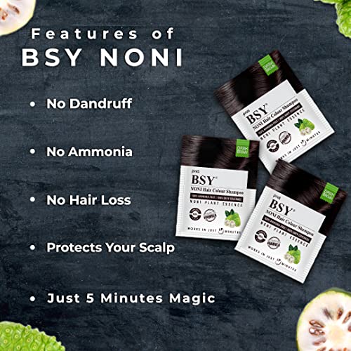 BSY Dark Brown Noni Hair Color Shampoo - Ammonia-Free, Anti Hair Fall, Noni Fruit Based, 5 Minute Hair Dye (20mlx20)