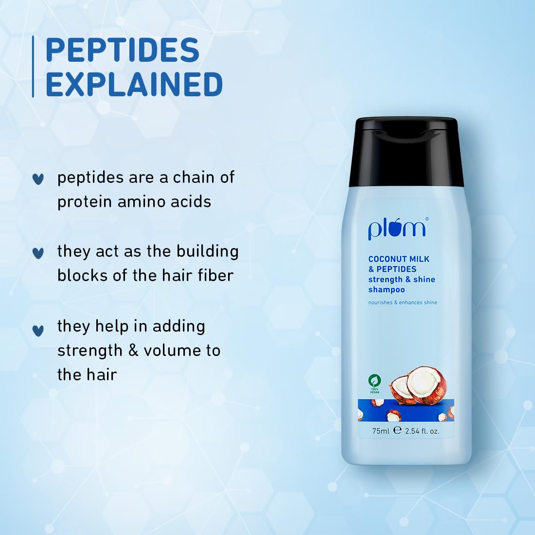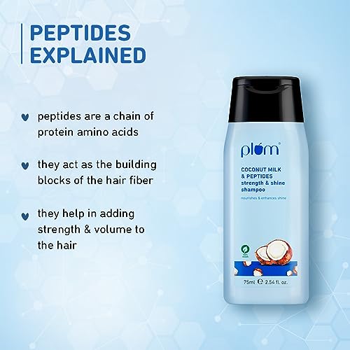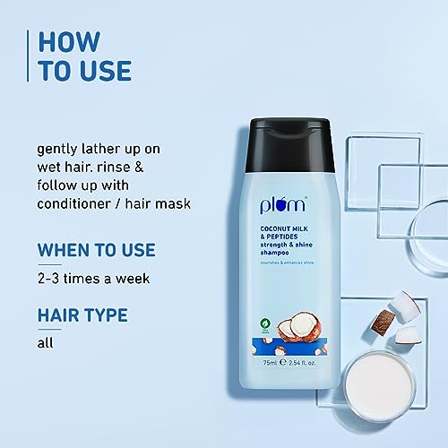 Plum Coconut Milk & Peptides Shampoo for Dry & Frizzy Hair | Provides 22X Shiny & Softer Hair | Paraben-Free | Hair Shampoo for Women & Men | for Straight, Wavy & Rough Hair | pH Balanced | 75ml