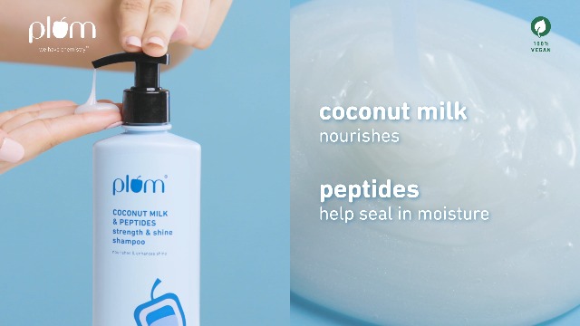 This nourishing shampoo is enriched with coconut milk which enhances shine and peptides which strengthen hair strands. 22x shinier hair in 1 wash*! Why you'll love itThis nourishing shampoo enhances shine and smoothens strands. This shampoo also helps add volume to hair. The blend of coconut milk & peptides helps restore hair moisture & keeps hair healthy. ⢠Paraben-freeâ⢠Phthalate-freeâ⢠Cruelty-free⢠100% vegan as always! What makes this shampoo unique?The gentle cleansing formula is good on the scalp and is nourishing too. The fusion of coconut milk & peptides helps in giving a smooth sleek look right from the first wash! Enriched with coconut milk & peptides For all hair types Use 2-3 times a week for shiny hair! Benefits: Enhances shine Strengthens strands Adds volume to hair Helps restore hair moisture Hair Type: Good for:All hair types USP: 22x shinier hair in 1 wash* Smooth shiny hair from the 1st wash Strengthens strands and adds volume to hair Coconut Milk: Is rich in vitamins which helps enhance shine and moisturises hair strands to give soft smooth shiny hair. It also helps in rejuvenating dry hair. Peptides: Pea Peptides help strengthen hair strands and stimulate hair follicles. They also add volume to hair and give a silky-smooth finish.