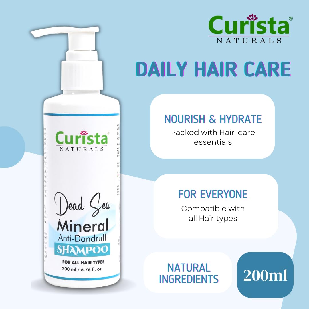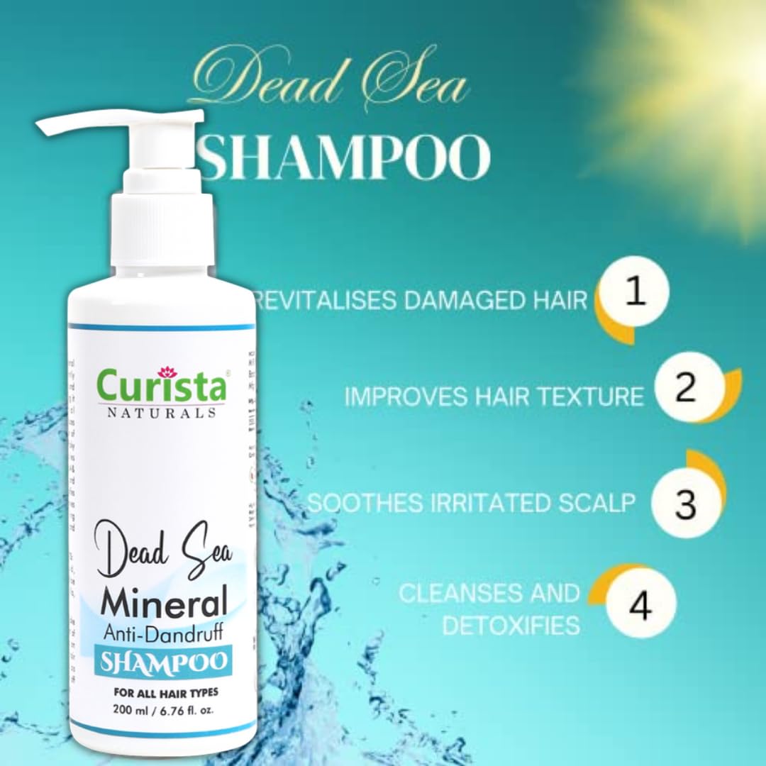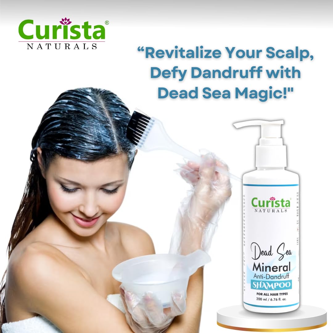 Introducing Curista Naturals Dead Sea Mineral Anti-Dandruff Shampoo a luxurious blend of nature's best ingredients crafted to give your hair the care it deserves. Enriched with the power of Dead Sea minerals Almond Oil Aloe Vera and Chamomile this shampoo is your solution for a healthy dandruff-free scalp and luscious locks. Key Features: Dead Sea Mineral Infusion: Immerse your hair in the rejuvenating benefits of Dead Sea minerals known for their therapeutic properties. These minerals work wonders in promoting scalp health and maintaining a balanced environment for your hair to thrive. Almond Oil Elixir: Experience the richness of Almond Oil a natural elixir for hair. It deeply nourishes and strengthens your hair from root to tip leaving it visibly softer and more manageable. Soothing Aloe Vera: Our formula includes the calming effects of Aloe Vera offering relief to a sensitive scalp. Enjoy a soothing sensation as Aloe Vera works to moisturize and reduce irritation. Chamomile Infusion: Unwind with the gentle touch of Chamomile. Known for its calming properties Chamomile helps to soothe the scalp while leaving your hair with a natural shine. Natural Anti-Dandruff Formula: Say goodbye to pesky dandruff with our natural anti-dandruff solution. This shampoo effectively combats flakes while promoting a healthy scalp environment for long-lasting results. Sulfate-Free Brilliance: We understand the importance of gentle care for your hair. Our sulfate-free formula ensures a thorough cleanse without stripping away essential oils leaving your hair beautifully clean and revitalized. Embrace the Curista Naturals experience and let your hair radiate health and vitality. Elevate your daily hair care routine with the harmonious blend of Dead Sea minerals Almond Oil Aloe Vera and Chamomile. Treat your hair to the luxury it deserves and say hello to a dandruff-free beautifully nourished mane. Your hair transformation begins with Curista Naturals!