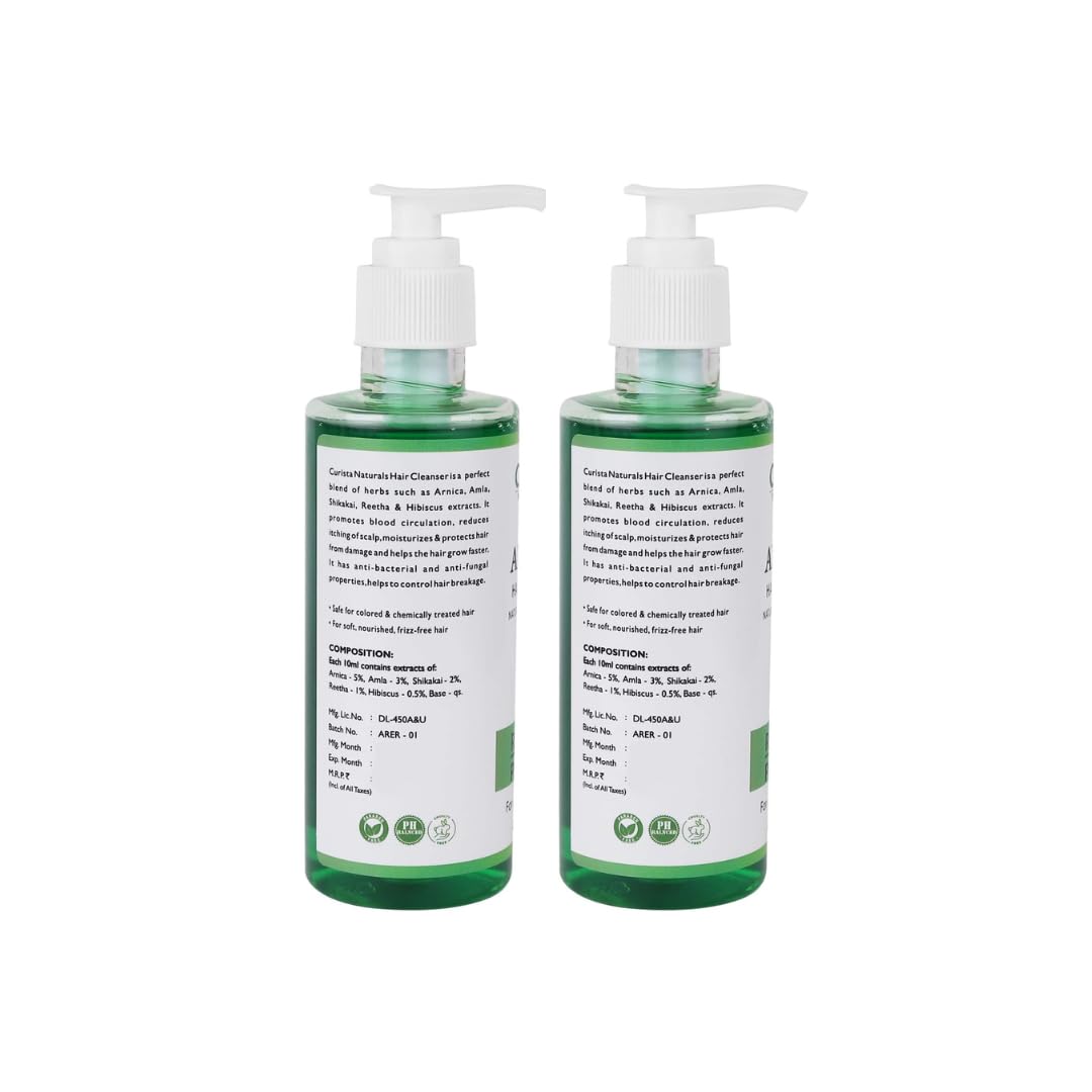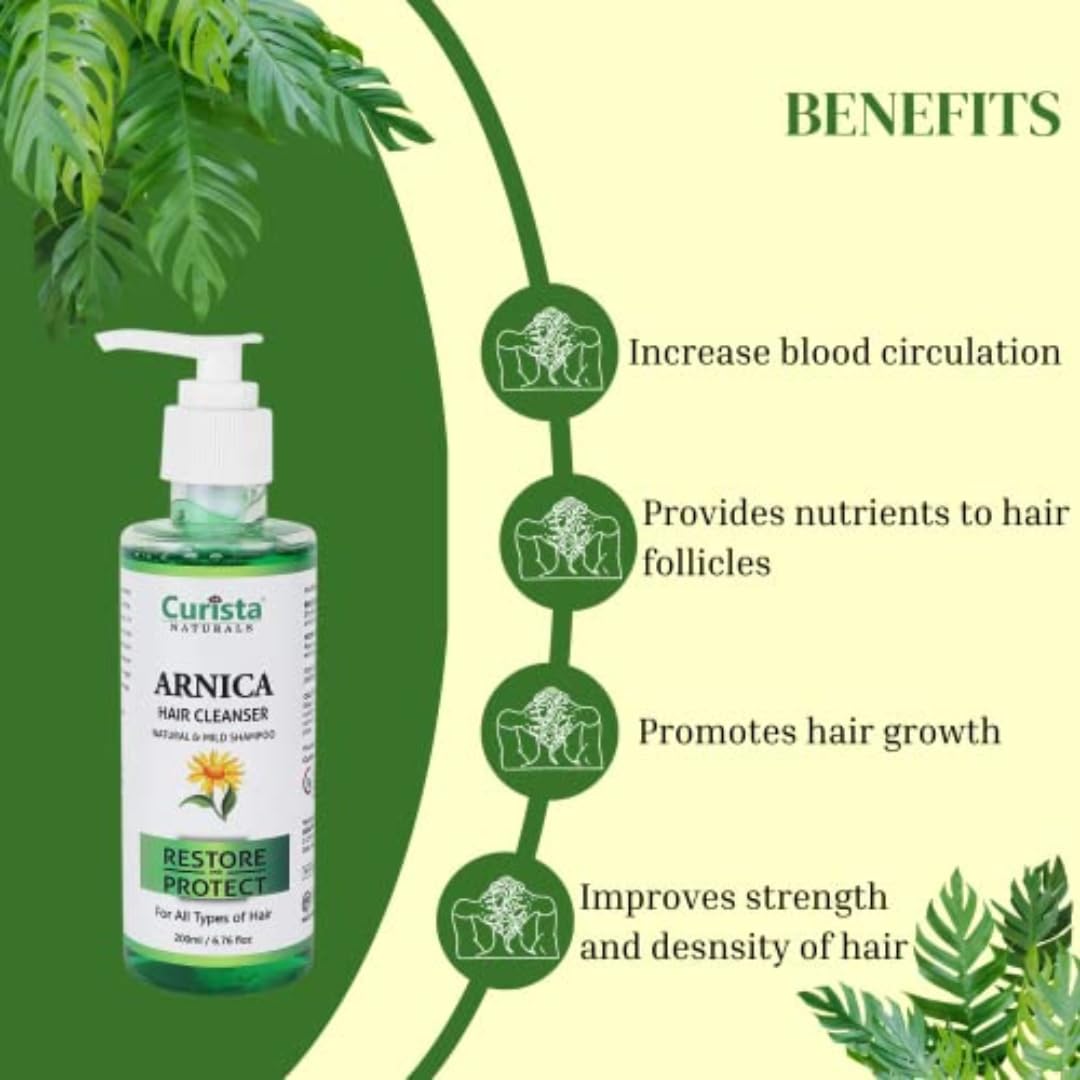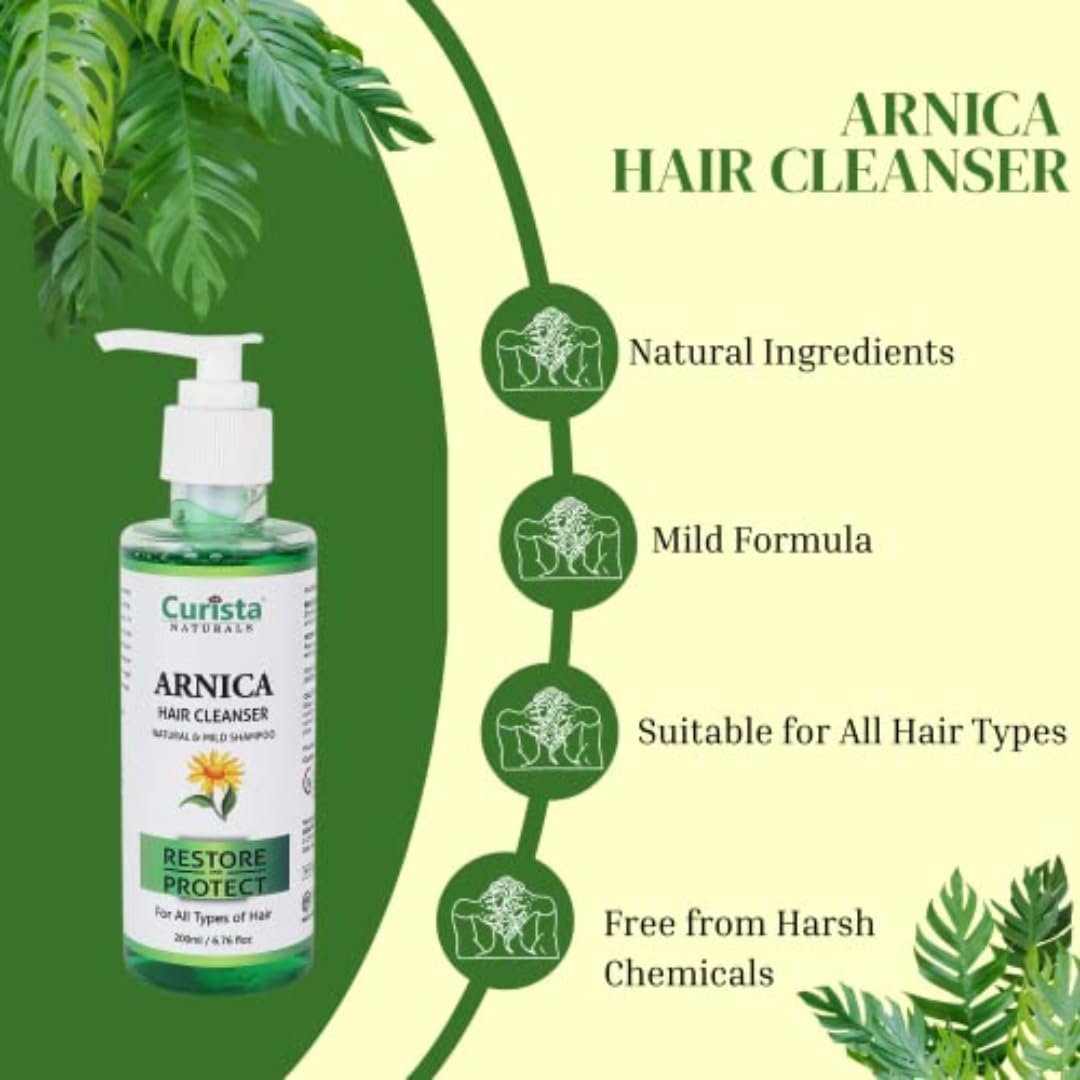 Curista Naturals Hair Cleanser Natural & Mild Shampoo gently cleanses your scalp & hair and improves blood circulation to the scalp. Promote healthy hair and reduce hair fall. Packed with the power of Arnica Montana Amla Shikakai Reetha and Hibiscus this natural and organic product revolutionizes your hair care routine. A pH-balanced shampoo that controls hair loss and dandruff & re-establishes moisture & shine. Curista Naturals Arnica Hair Cleanser (Shampoo) is an all-in-one shampoo that makes hair smooth and silky. This natural hair shampoo cleanses the hair without removing the natural oils and nourishes the hair follicles.
