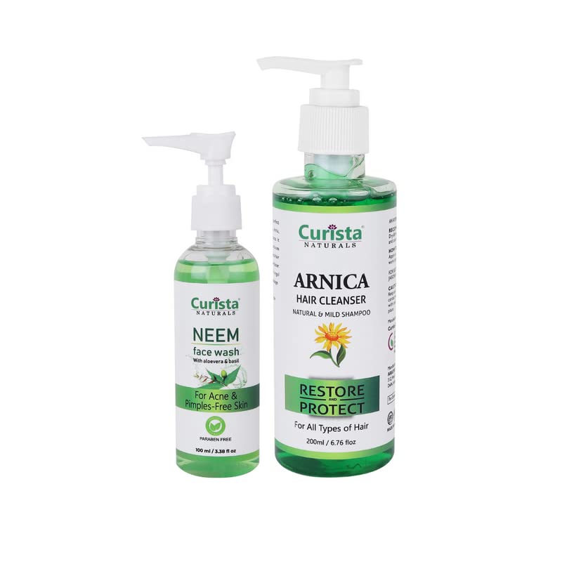 Curista Naturals Neem Face Wash 100 ml With Hair Cleanser Natural & Mild Shampoo For All Types of Hair 200 ml - Combo Pack of 2