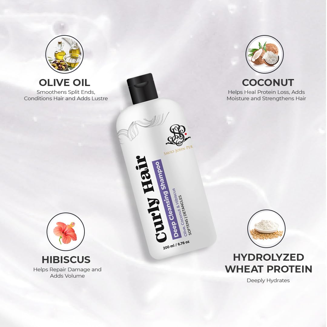 Curly Hair Shampoo | Wavy Frizzy and Curly Hair Products | Olive oil | Coconut Oil | Hair care for curly hair | Created by Savio John Pereira - 200ml (Pack of 2)