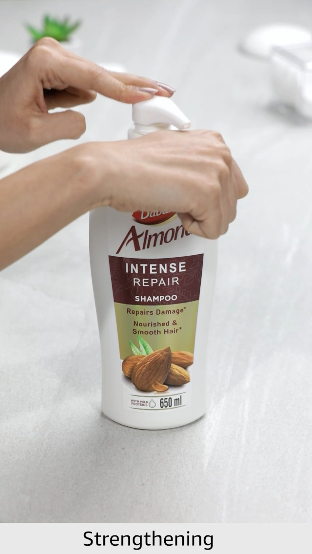 Have your hair become dull dry and weak ? It can be because of lack of Nourishment. Try Dabur Almond Shampoo â with the Goodness of Almond-Vita Complex & Milk Extracts. This shampoo helps strengthen your hair fibres leaving your hair healthier softer and shinier. For best results use along with Dabur Almond Hair Oil.