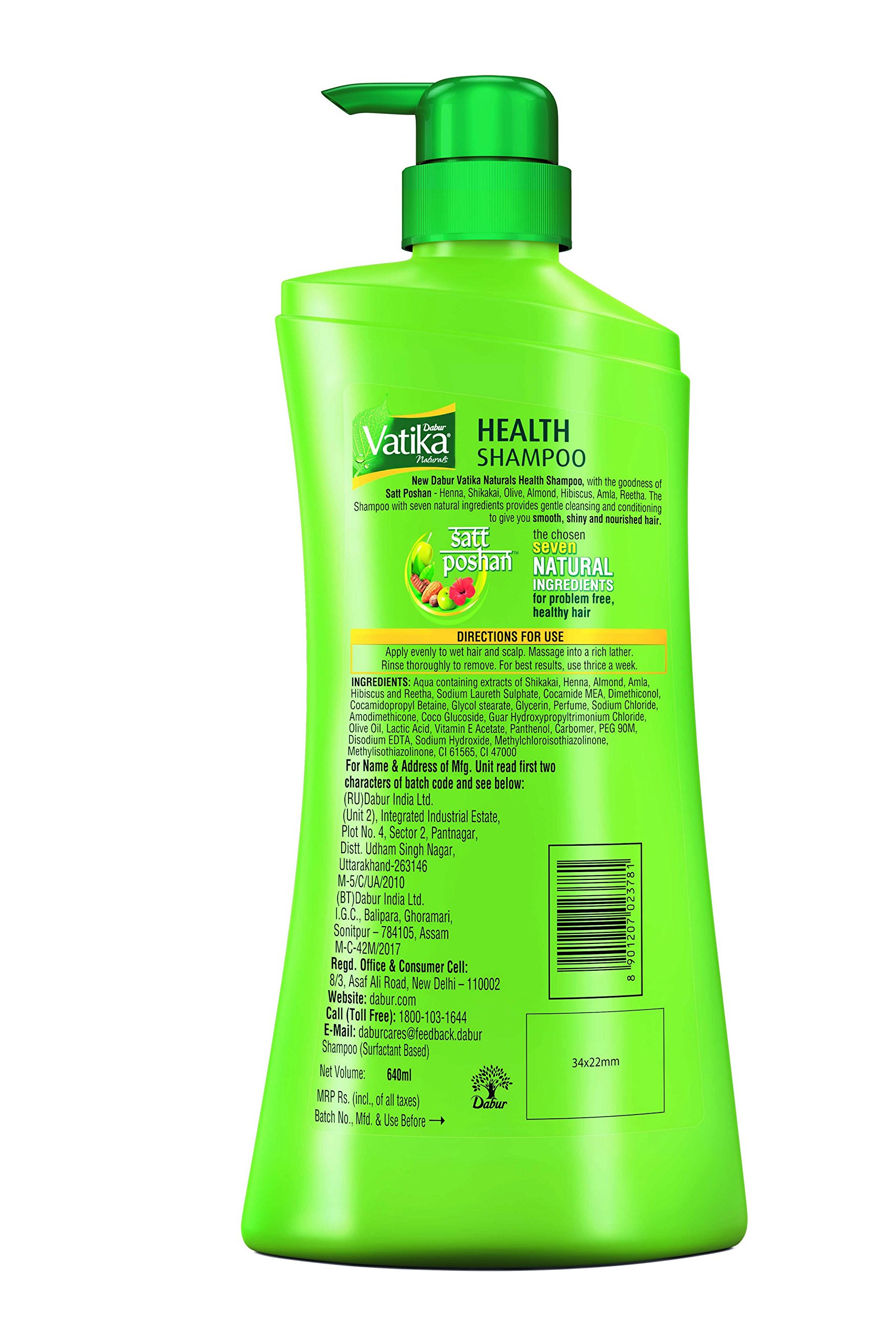 New Dabur Vatika naturals health shampoo with the goodness of satt poshan (seven natural ingredients) henna shikakai olive almond hibiscus amla reetha. The shampoo with seven natural ingredients provides gentle cleansing and conditioning to give you smooth shiny and nourished hair.