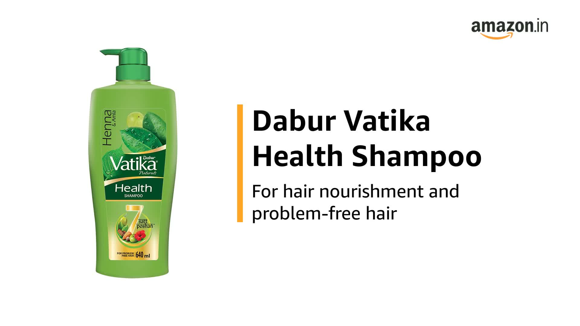 Are you plagued with constant hair problems? Try Dabur Vatika Health Shampoo - Enriched with the goodness of seven natural ingredients - Henna Amla Shikakai Almond Hibiscus Reetha and Olive to nourish your hair & keep it problem free. Our formulation provides gentle cleansing & conditioning to keep your hair smooth silky and problem free. It is enriched with Henna which is a traditional home remedy for healthy & voluminous hair and Amla which is strong in minerals & Vitamin C and promotes hair growth. Along with these it contains ingredients like Reetha Shikakai Hibiscus Olive and Almond which helps keep your hair strong & keeps hair problems away. It contains no added Parabens. Directions to use: - If you have dry hair and scalp washing your hair once a week should be enough. If you have greasy hair and scalp you can use it every other day. However depending on your work place it can be used daily.