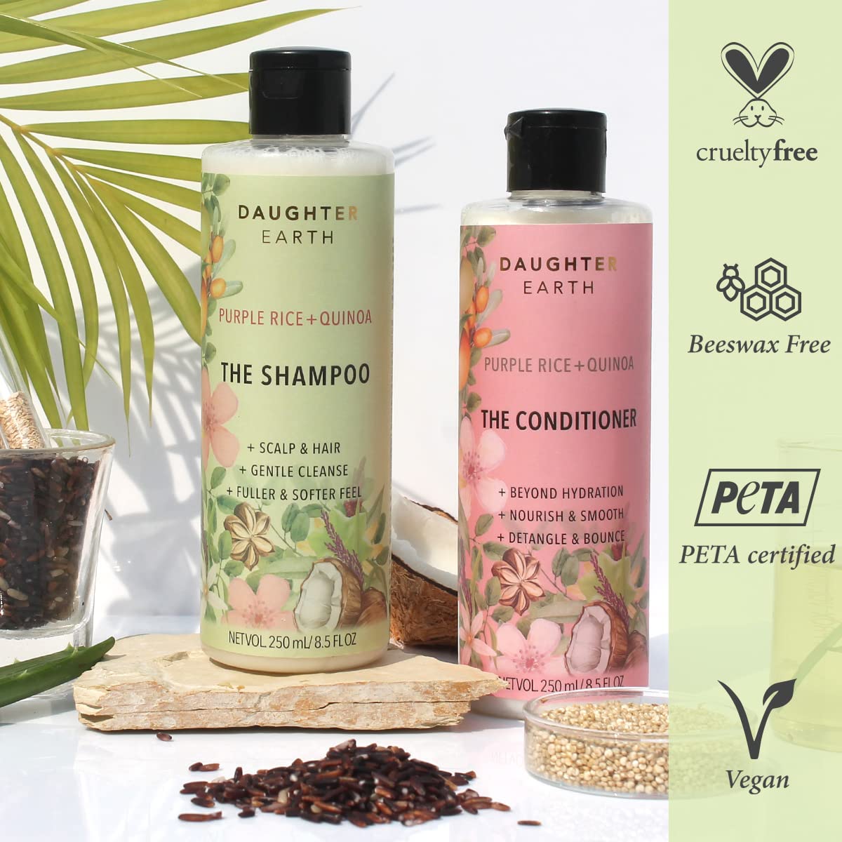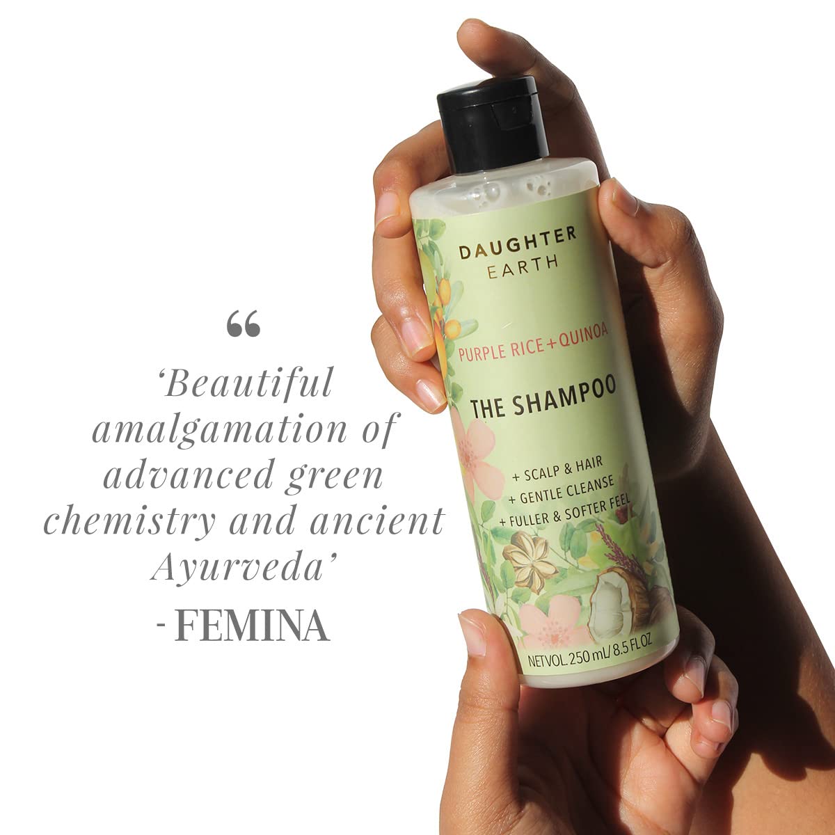 DAUGHTER EARTH The Shampoo With Purple Rice & Quinoa For Nourishment & Hairfall Rescue With Dandruff & Frizzy Hair | Gentle Cleanser For Scalp & Hair For Softer Stronger and Fuller Feel | 250 ml