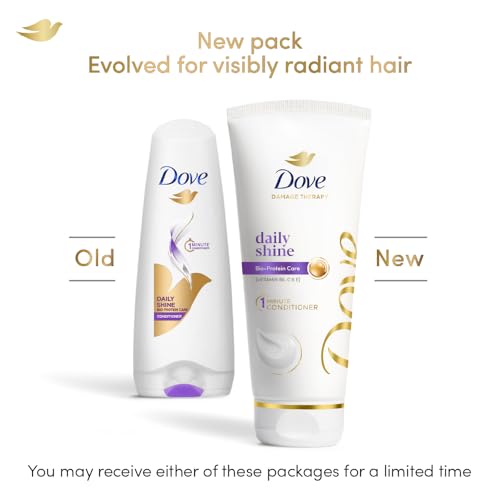 DETANGLES HAIR GIVING IT AN UNBELIEVABLE SHINE Tangles and frizz not only make hair look dull but can also lead to increased hair breakage while combing. That's why shampoo alone is not enough. Use Dove Daily Shine Conditioner everytime after shampoo for detangled smooth hair with an unbelievable shine. Infused with Nutritive serum it detangles hair along the lengths adding shine taming frizz and making hair so smooth that your comb will slide through. After applying shampoo wash your hair and rinse out excess water. Then follow below 3 steps: 1. SQUEEZE half to one spoon of Dove conditioner for shoulder length hair 2. SLIDE it from ears to tips where hair tangles and breaks more easily. 3. WAIT for a minute and WASH with water only thoroughly. Try Dove Daily Shine Conditioner for softer shinier easily manageable hair from the very first wash. For best result use Dove Conditioner every time after shampoo. This is because shampoo cleans scalp and repairs hair while conditioner deeply nourishes your hair. Use Dove conditioner every time after shampoo for detangled smooth frizz-protected hair that breaks less while combing. This Dove conditioner helps detangle all hair types including straight curly or dry hair.