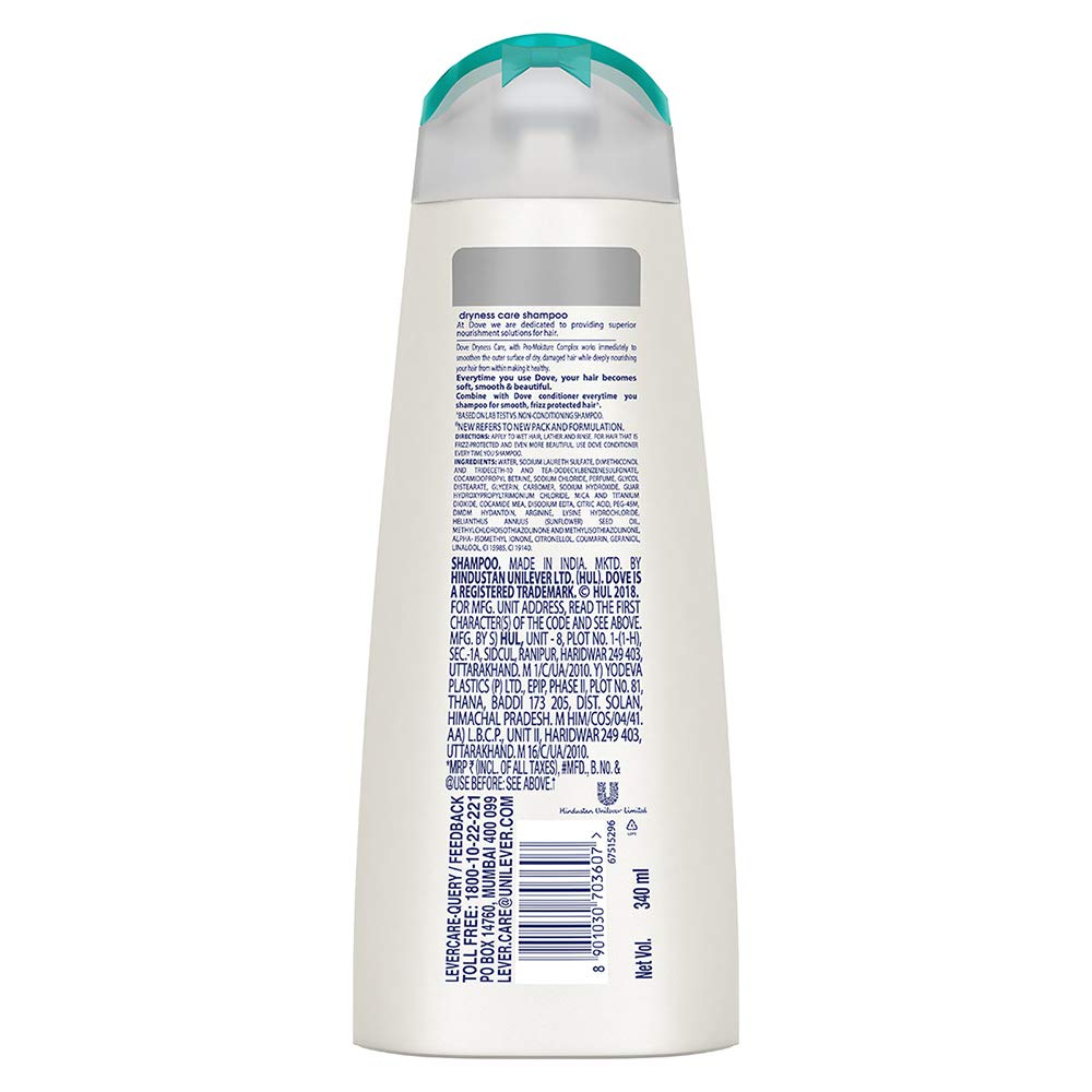 Dove Daily Shine Shampoo 1 L For Damaged or Frizzy Hair Makes Hair Soft Shiny And Smooth - Mild Daily Shampoo for Men & WomenThe mystery of how to get shiny hair isn't a tricky one to solve anymore. The key to getting shiny damage protected hair is making sure your hair is nourished from the start of your routine. That's where Dove Daily Shine Shampoo comes in. Dove Daily Shine Shampoo with Nutritive Serum builds a protective shield around the hair fiber and defends your hair from daily hair damage. It is a pleasant hair cleanser that gives you voluminous and healthy looking hair. With sunflower oil this Dove shampoo not only cleans your hair but gives you voluminous hair. It gives protection from the aggression your hair faces every day. Its Nutritive Serum formula absorbs into the hair strands to keep them beautifully nourished and shiny this Dove shampoo surrounds your hair with a protective shield defending it from everyday stresses like brushing damage. With regular use Dove Daily Shine shampoo makes your hair smooth shiny and beautiful looking. This Dove shampoo cleanses from roots up as well as it helps make your hair look healthy. The result? Beautifully shiny strong and silky hair which is everything you want it to be. *Based on lab test with Dove Daily Shine System vs non-conditioning shampooDove Dryness Care Shampoo 340 ml With Pro-Moisture Complex for Dry Hair & Scalp Gives Soft Smooth Damage Free Hair - Daily Shampoo for Men & WomenHarsh humid weather taking a toll on your beautiful hair causing damage with every passing day? Guard your hair against harsh weather. Crafted from a perfect blend of ingredients the shampoo helps to restore hair softness and smoothness. To help prevent daily hair damage Dove Nutritive Solutions Dryness Care Shampoo nourishes normal and dry locks for healthy looking hair. The shampoo cleans your dry locks and gives it a shiny and glossy look. The specially designed formula of this dryness care shampoo is perfect for days when your dry hair needs help. Dove Dryness Care Shampoo is just what you need for smooth and bouncy hair! This moisturizing and nourishing shampoo helps to protect hair from damage for silky soft locks. Uniquely formulated with Pro-Moisture Complex this Dove shampoo nourishes hair strands from within. Dove Dryness Care Shampoo nourishes hair with each application for strong hair thatâs manageable and healthy looking. Gently massage this shampoo into your scalp to create a lather and rinse well. After wash this shampoo makes your hair look glossy and locks dryness of your hair. Smooth soft and more resilient to daily damage from grooming and brushing beautiful hair is just one wash away with this nourishing shampoo.