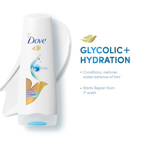 Is your hair increasingly becoming prone to dryness roughness to the extent that it tends to become stiff and doesnât move naturally. The dryness in your hair is your hair asking for hydration. Dry rough hair is indication of beginning of damage. Your hair is experiencing the onset of damage and loss of water balance is one of the possible causes. Dove understands this and hence brings to you an effective solution that helps restore the water balance leaving hair hydrated for upto 100 hours^ with regular use. Introducing Dove Glycolic + Hydration conditioner- enriched with 5% Hydra-Glycol~ and Bio-Protein care that helps in repairing hair and restoring hydration. For the first time in India Dove has introduced 5% Hydra-glycol~ technology with the new Dove Glycolic+Hydration range. 5% Hydra-Glycol~ includes hydrating glycerin sodium gluconate glycolic acid propylene glycol - together these effectively hydrates your dry hair. The Result - dry stiff hair becomes hydrated and fluid as if flowing like water moving effortlessly as you go about your day. Disclaimer: ^Based on lab tests with Dove Glycolic+ Hydration range versus non-conditioning shampoo with regular use ~5% Hydra-Glycol~ is a combination of glycerin dimethicone amodi-methicone glycolic acid propylene glycol and sodium gluconate.