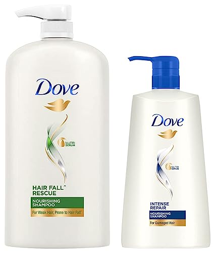 Dove Hair Fall Rescue Shampoo 1LWe love the feeling of beautiful hair â but daily damage can leave your hair prone to breakage. Let hair fall be an issue of the past. Use the hair fall rescue shampoo from Dove regularly to get thick and luscious hair as the shampoo works to reduce hair fall by up to 98 percent . Specially formulated for better hair fall control Dove nutritive solutions hair fall rescue shampoo strengthens and nourishes fragile hair from roots up. Perfect as a daily hair fall treatment the gentle formula fortifies strands to reduce hair fall . Enriched with nutrilock actives our best shampoo for hair fall immediately seals cuticles and strengthens strands to help minimize hair fall due to breakages leaving them looking fuller. Healthier hair means lesser breakage and reduced hair fall . Buy Dove hair fall rescue shampoo and forget your hair fall troubles. Leaving your hair feeling strong and beautiful day after day. Say no to hair fall worries and do more in life. Dove hair fall rescue lets you be stronger bolder and closer every day. Hair fall refers to hair breakage based on a lab test with Dove hair fall rescue system vs non-conditioning shampoo.Dove Intense Repair Shampoo 650mlDove Intense Repair Shampoo is formulated with Keratin Actives this Dove shampoo helps your hair to recover from damage in two different ways. The formula repairs signs of surface damage making your hair look and feel smoother and stronger against breakage. It also penetrates the strands to provide hair nourishment deep inside leaving you with healthier-looking more beautiful hair wash after wash.