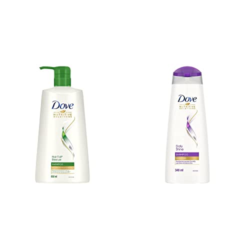 Dove Hair Fall Rescue Shampoo 650mlWe love the feeling of beautiful hair â but daily damage can leave your hair prone to breakage. Let hair fall be an issue of the past. Use the hair fall rescue shampoo from Dove regularly to get thick and luscious hair as the shampoo works to reduce hair fall by up to 98 percent . Specially formulated for better hair fall control Dove nutritive solutions hair fall rescue shampoo strengthens and nourishes fragile hair from roots up. Perfect as a daily hair fall treatment the gentle formula fortifies strands to reduce hair fall . Enriched with nutrilock actives our best shampoo for hair fall immediately seals cuticles and strengthens strands to help minimize hair fall due to breakages leaving them looking fuller. Healthier hair means lesser breakage and reduced hair fall . Buy Dove hair fall rescue shampoo and forget your hair fall troubles. Leaving your hair feeling strong and beautiful day after day. Say no to hair fall worries and do more in life. Dove hair fall rescue lets you be stronger bolder and closer every day. Hair fall refers to hair breakage based on a lab test with Dove hair fall rescue system vs non-conditioning shampoo.Dove Daily Shine Shampoo 340mlThe mystery of how to get shiny hair isn't a tricky one to solve. The key to getting shiny damage free hair we all long for is making sure your hair is nourished from the start of your routine. That's where Dove daily shine shampoo comes in. Dove daily shine shampoo with nutritive serum builds a protective shield around the hair fibre and defends your hair from daily hair damage. It is a gentle hair cleanser that keeps your hair looking healthy and lustrous. It is mild on your scalp but gives protection from the aggression your hair faces every day. Its nutritive serum absorbs into the hair strands to keep them beautifully nourished and shiny this Dove shampoo surrounds your hair with a protective shield defending it from everyday stresses like brushing and damage. And not only is it gentle enough to use every day over time Dove daily shine shampoo makes your hair better . So as well as cleansing from roots up it helps make your hair look healthy too. The result. Beautifully shiny strong and silky hair which is everything you want it to be. Based on lab test with Dove daily shine system vs non-conditioning shampoo.