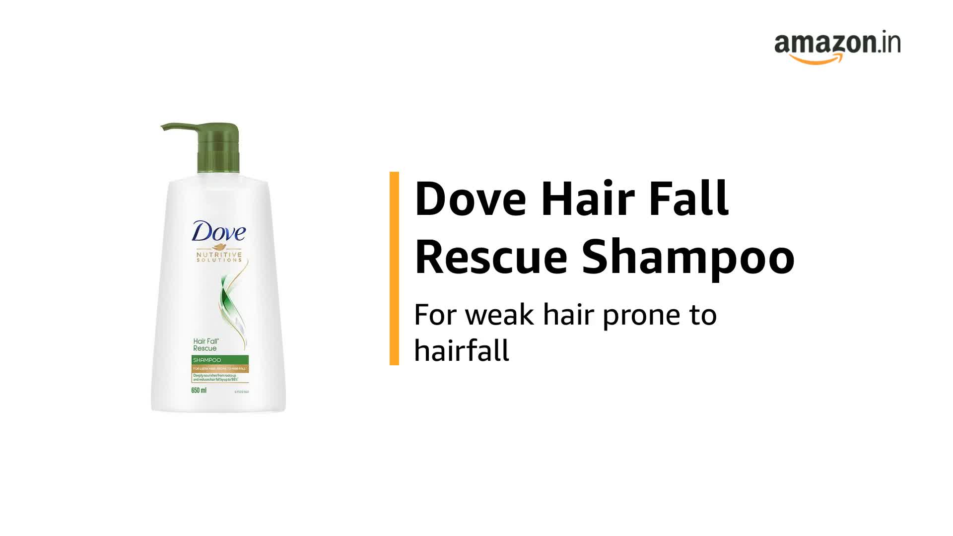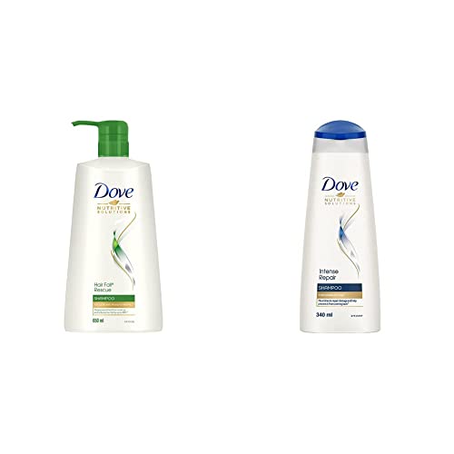 Dove Hair Fall Rescue Shampoo 650mlWe love the feeling of beautiful hair â but daily damage can leave your hair prone to breakage. Let hair fall be an issue of the past. Use the hair fall rescue shampoo from Dove regularly to get thick and luscious hair as the shampoo works to reduce hair fall by up to 98 percent . Specially formulated for better hair fall control Dove nutritive solutions hair fall rescue shampoo strengthens and nourishes fragile hair from roots up. Perfect as a daily hair fall treatment the gentle formula fortifies strands to reduce hair fall . Enriched with nutrilock actives our best shampoo for hair fall immediately seals cuticles and strengthens strands to help minimize hair fall due to breakages leaving them looking fuller. Healthier hair means lesser breakage and reduced hair fall . Buy Dove hair fall rescue shampoo and forget your hair fall troubles. Leaving your hair feeling strong and beautiful day after day. Say no to hair fall worries and do more in life. Dove hair fall rescue lets you be stronger bolder and closer every day. Hair fall refers to hair breakage based on a lab test with Dove hair fall rescue system vs non-conditioning shampoo.Dove Intense Repair Shampoo 340mlIs your hair showing signs of damage â split ends dryness roughness or hair fall. The secret of how to repair damaged hair. A strengthening shampoo that helps to treat the signs of damage with two-way care for both long and short-term results . Give your hair the essential care it deserves with Dove intense repair shampoo. The intense repair shampoo works to restore the health and shine of your hair. It contains fibre actives which penetrate your hair and rebuild damaged hair to renew the lost gloss and vigour and give life to your damaged hair. Gentle enough for daily use Dove intense repair shampoo helps to immediately repair strands while nourishing them from within for healthy looking hair thatâs stronger this shampoo for damaged hair repairs signs of damage for smooth and strong hair. Formulated with fibre actives this shampoo for damaged hair reinforces strands to prevent the signs of damage on hair. Nourishment for damaged hair to leave you with beautiful looking hair all day long. Based on lab test with Dove intense repair system vs non-conditioning shampoo strength against hair breakage based on lab test with Dove intense repair system vs. Non-conditioning shampoo. How to use :Completely soak your hair and massage your shampoo gently over your scalp. Rinse it out well. Usually rinse and repeat? For daily shampooing the rinse and repeat rule isn't actually necessary (unless you've been trigger-happy with the hairspray) so just once will do.