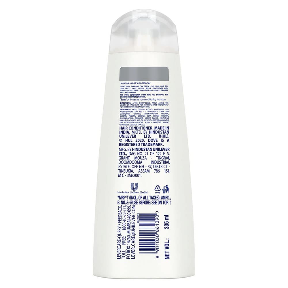 Dove Intense Repair Hair Conditioner With Keratin Actives to Smoothen Dry and Frizzy Hair - Deep Conditioner for Damaged Hair for Men & Women 335MLDoes your hair get frizzy and unmanageable? Are you left wishing for a remedy to fix your frizzy tassels? Do you want to know the secret to fixing frizzy hair? Try New Dove Intense Repair Conditioner. Control frizz with a nourishing conditioner thatâs formulated to nourish and help with frizz prevention. Formulated with Keratin Actives Dove Intense Repair Conditioner helps to nourish dry and frizzy hair with two-way care. It controls external signs of dryness in the form of frizz while nourishing strands to help them look their best. This conditioner for frizzy damaged hair leaves hair visibly smooth and more manageable â giving you smoother hair* that you will be proud of. Use it after your shampoo on damp hair for best results. This nourishing conditioner works immediately to smoothen the hair surface deeply nourishing to moisturize hair strands for healthier looking and smoother*hair use Dove repair conditioner. With every use youâll be left with shiny and beautiful hair. Buy New Dove Intense Repair conditioner and treat your hair to a look that will be the cause of envy among all your friends. Dove Conditioners for 100% care. *Based on lab test with Dove Intense Repair system vs non-conditioning shampooDove Dryness Care Shampoo 340 ml With Pro-Moisture Complex for Dry Hair & Scalp Gives Soft Smooth Damage Free Hair - Daily Shampoo for Men & WomenHarsh humid weather taking a toll on your beautiful hair causing damage with every passing day? Guard your hair against harsh weather. Crafted from a perfect blend of ingredients the shampoo helps to restore hair softness and smoothness. To help prevent daily hair damage Dove Nutritive Solutions Dryness Care Shampoo nourishes normal and dry locks for healthy looking hair. The shampoo cleans your dry locks and gives it a shiny and glossy look. The specially designed formula of this dryness care shampoo is perfect for days when your dry hair needs help. Dove Dryness Care Shampoo is just what you need for smooth and bouncy hair! This moisturizing and nourishing shampoo helps to protect hair from damage for silky soft locks. Uniquely formulated with Pro-Moisture Complex this Dove shampoo nourishes hair strands from within. Dove Dryness Care Shampoo nourishes hair with each application for strong hair thatâs manageable and healthy looking. Gently massage this shampoo into your scalp to create a lather and rinse well. After wash this shampoo makes your hair look glossy and locks dryness of your hair. Smooth soft and more resilient to daily damage from grooming and brushing beautiful hair is just one wash away with this nourishing shampoo.
