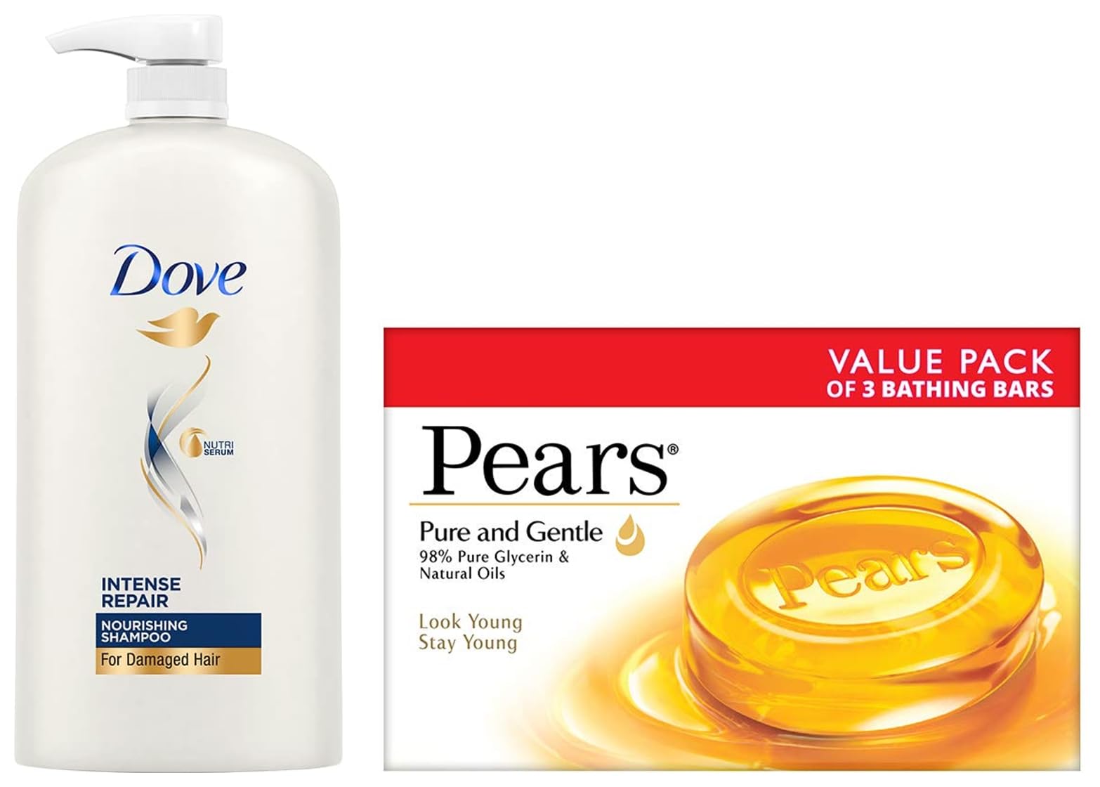 Dove Intense Repair Shampoo 1L & Pears Pure And Gentle Soap Bar 125g (Pack Of 3)