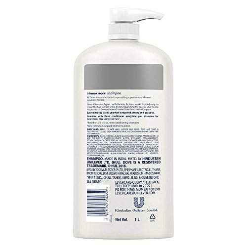 • Dove Intense Repair Shampoo gives you healthy looking and strong hair against breakage and makes your hair more beautiful. Ideal For: Men & Women