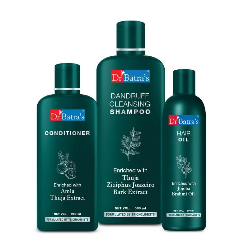 Dr Batra's Dandruff cleansing Shampoo - 500ml Conditioner - 200ml and Hair oil - 200 ml Deep nourishment healthy scalp balanced pH (Pack of 3 for Men and Women)