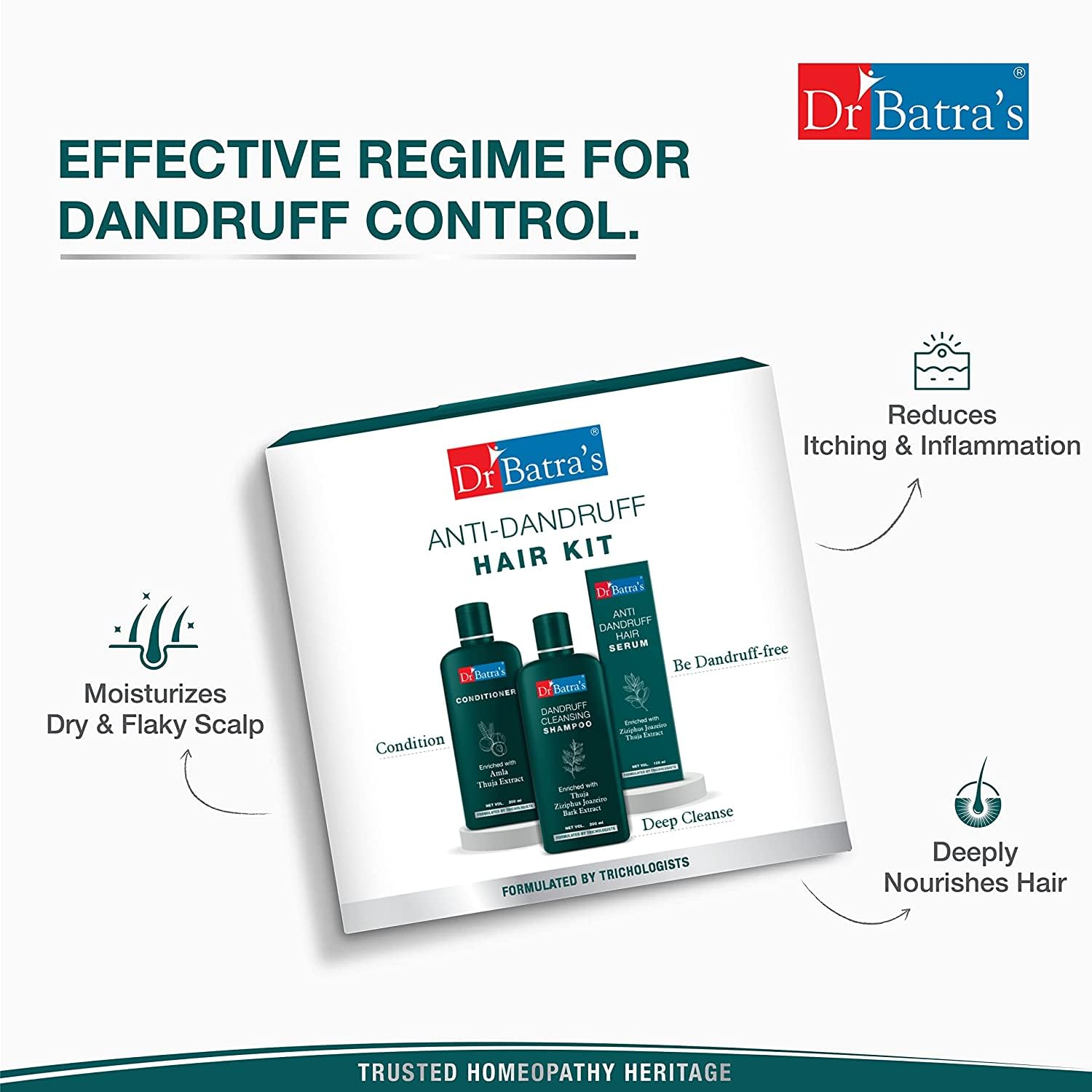 Dr Batra's Anti Dandruff range of hair care products are carefully formulated with gentle ingredients that help dandruff and soothe itching. Dr Batra's Anti Dandruff Hair Kit includes the dandruff cleansing shampoo conditioner and anti dandruff serum to provide complete care. This 3-in-1 hair care kit keeps your hair flake-free and is the perfect daily hair care regime to remove visible flakes restore scalp health and nourish hair from root to tip.