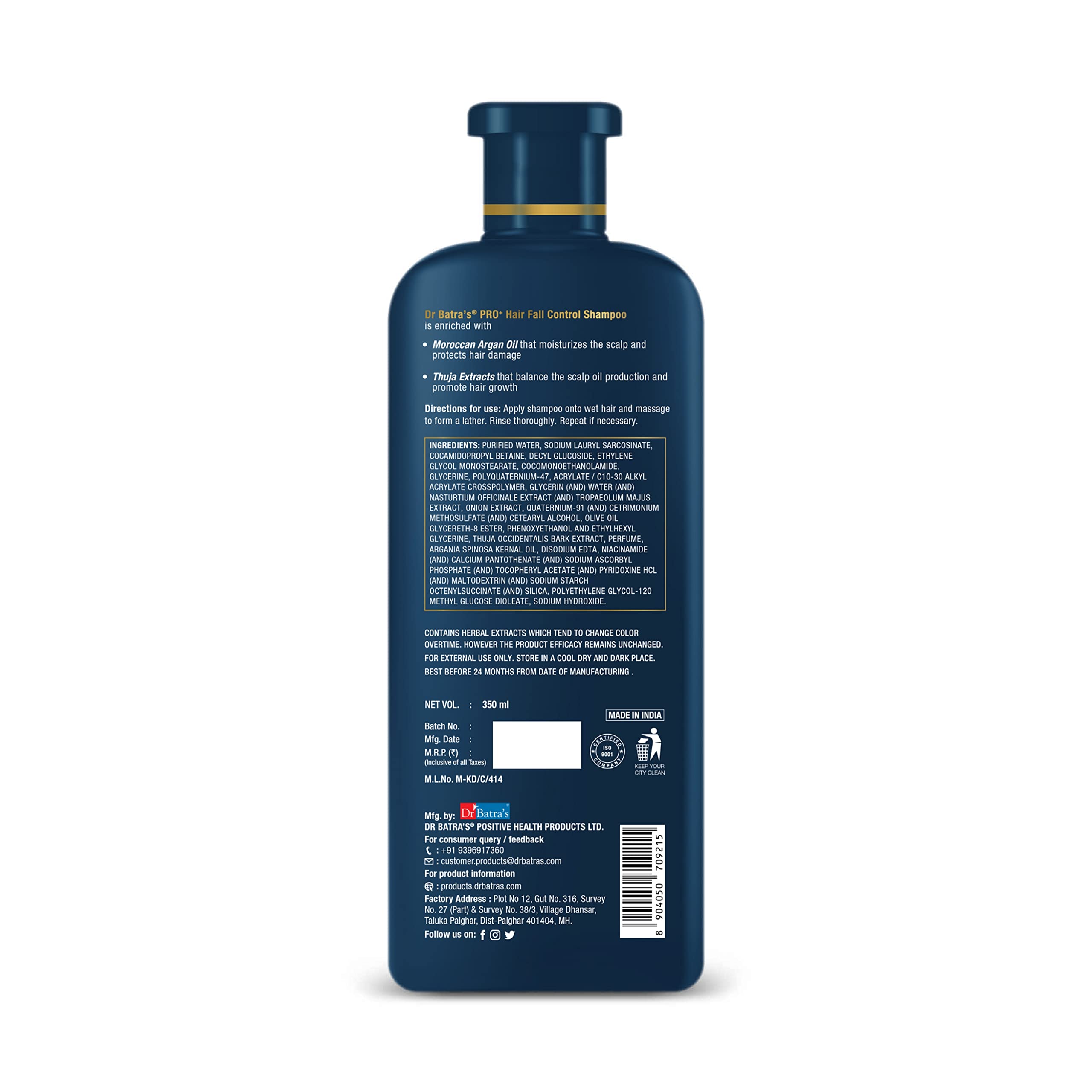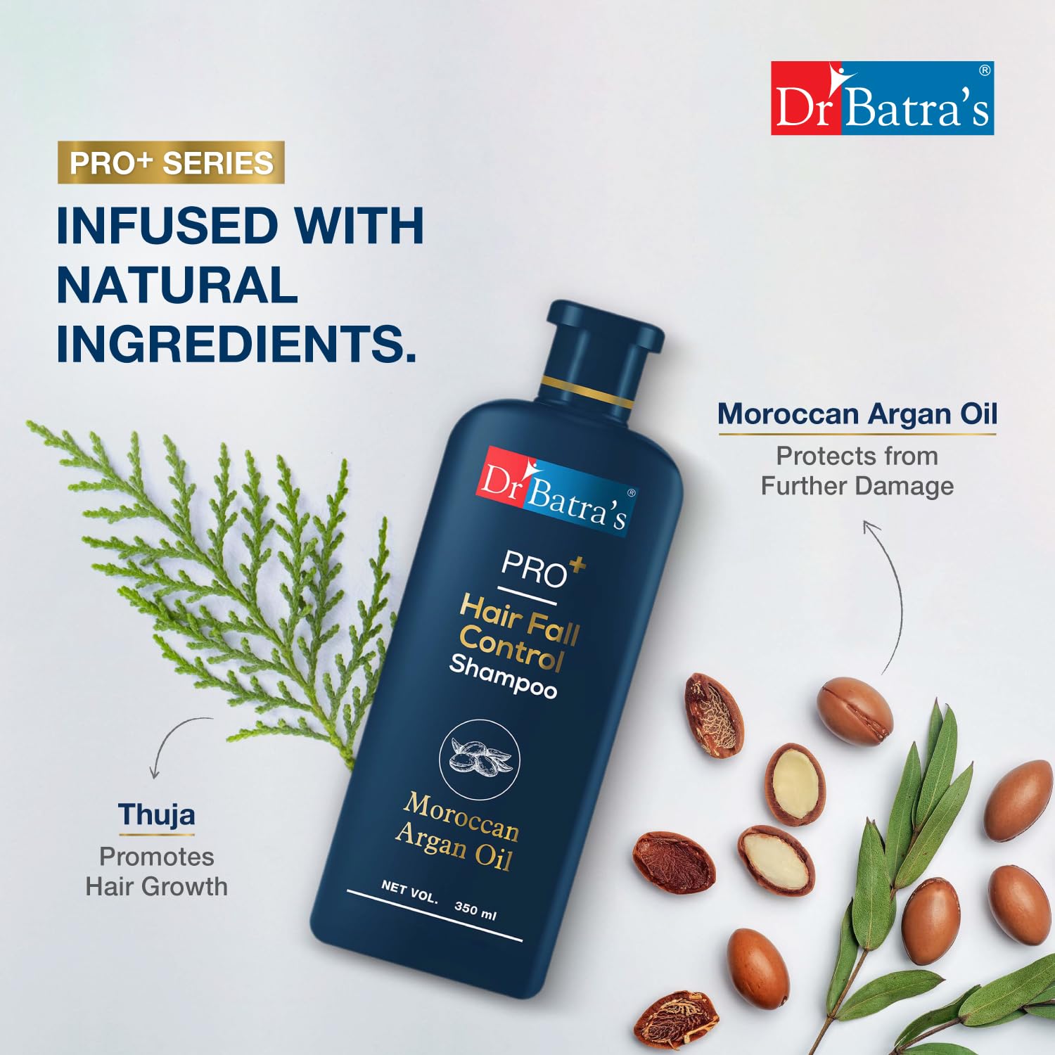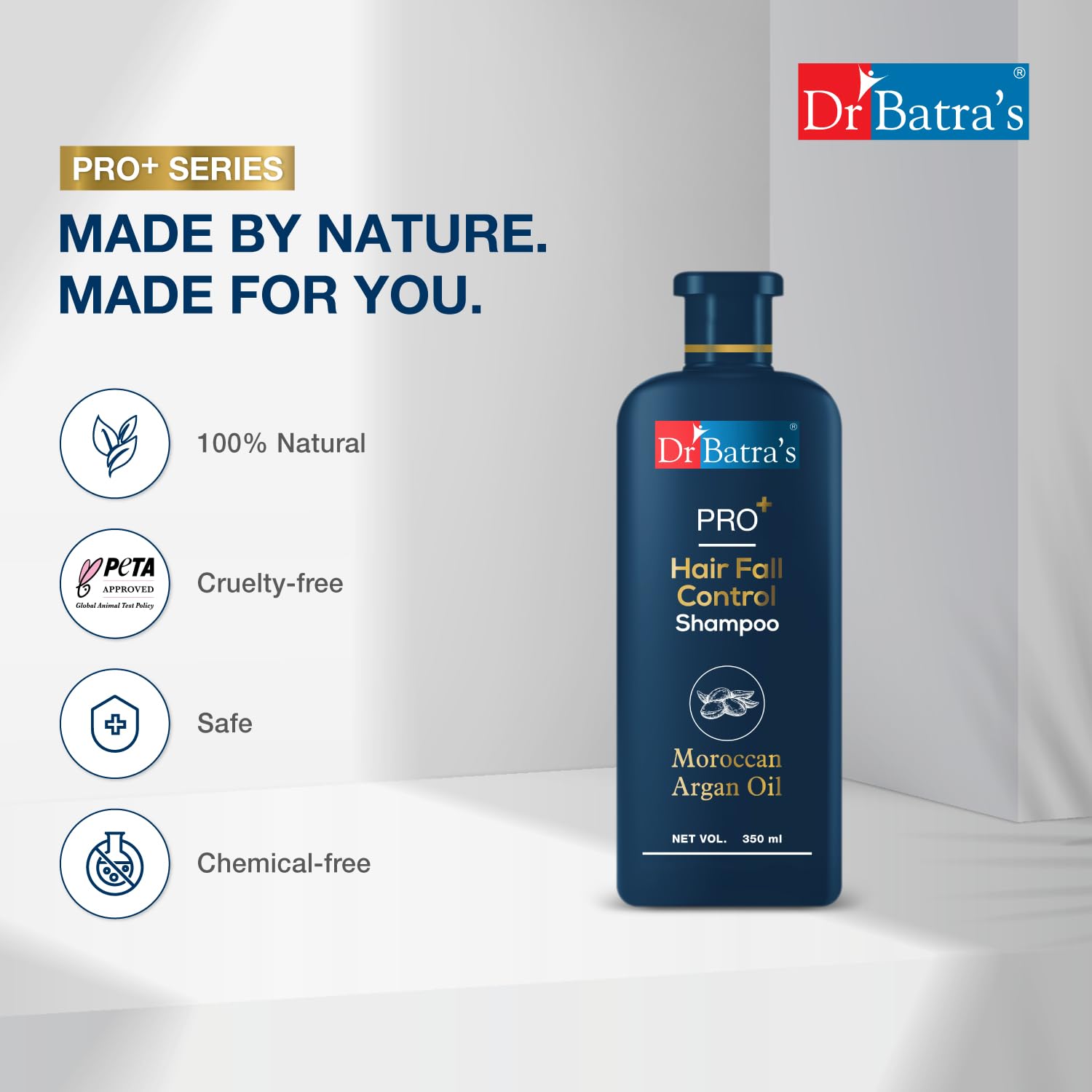 Dr Batra's PRO+ Hair Fall Protect Shampoo-350 ml | Sulphate Free Moroccan Argan Oil Shampoo for Men & Women (Pack of 1)