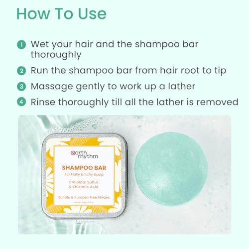 Earth Rhythm Anti-Dandruff Shampoo Bar for Itchy & Flaky Scalp | Men & Women | Contains Arnica Peppermint & Menthol Extracts | Sulphate & Paraben Free - 80gm