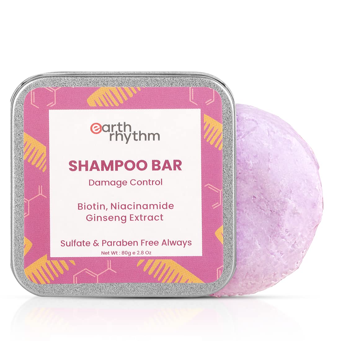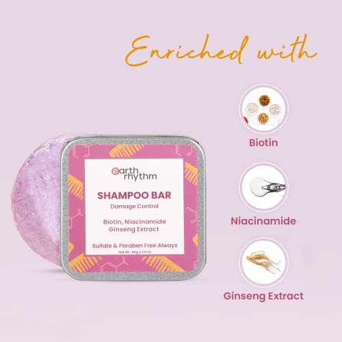 Earth Rhythm Biotin Shampoo Bar With Niacinamide & Ginseng Extract, Sulfate and Paraben Free, Controls Heat Damage, Restores Suppleness (Tin Packaging) - 80 gm